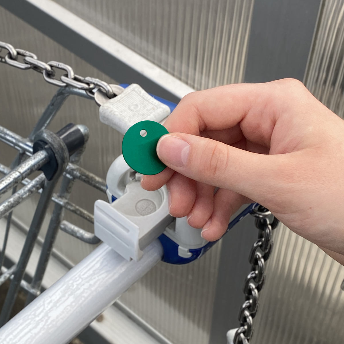 Einfacher Einkaufswagenchip aus Kunststoff mit einem Loch in der Mitte.Material: KunststoffMaße: 0 x 0 x 5 x Ø: 23,00 mmGewicht: 1 gDruckmöglichkeitenPosition 1: Auf RückseiteDruckart: TampondruckDruckgruppe: TAMAMaximale Farben: 5Breite: 7 mmHöhe: 15 mmPosition 2: HintenDruckart: UV-DigitaldruckDruckgruppe: UAMaximale Farben: 5Höhe: 15 mm