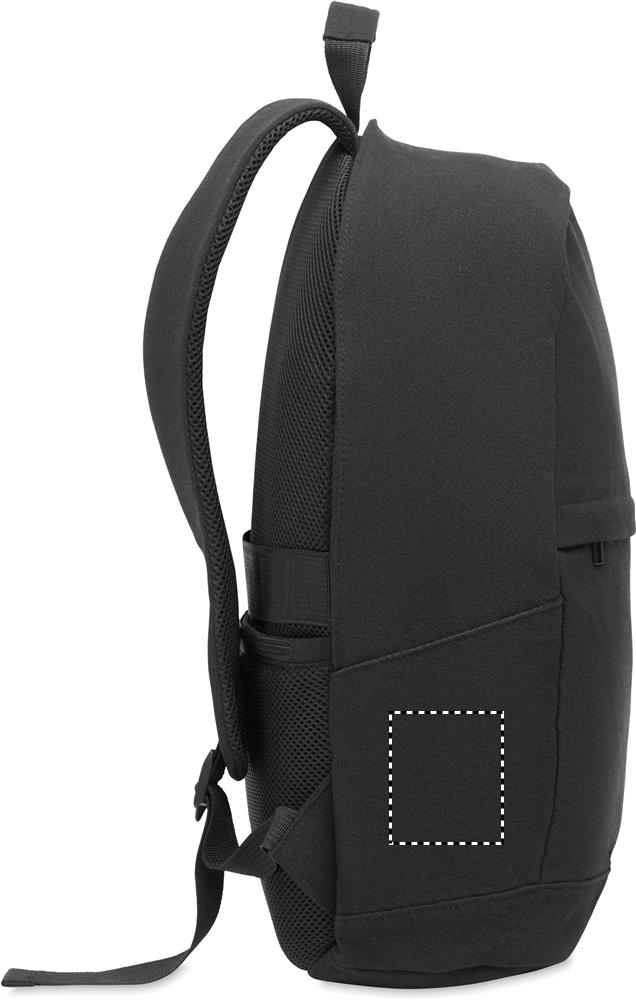 15'''' Laptop-Rucksack aus recycelter Baumwolle (70%) und recyceltem Polyester (30%). Zwei Reißverschlusstaschen. Weich gepolsterter Rücken und Schultergurte. Trolley-Halterung.