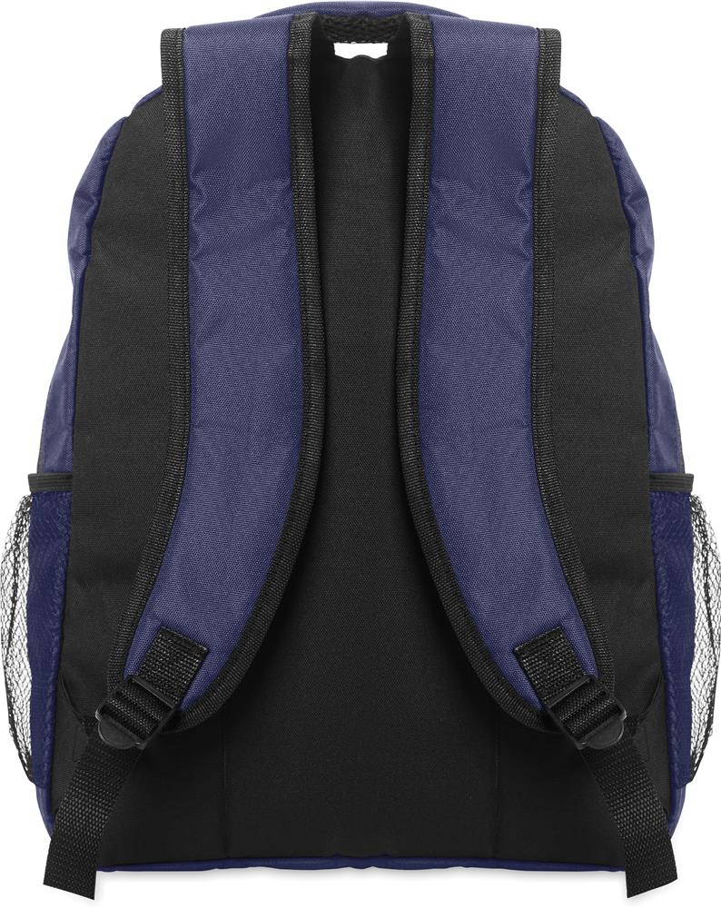 15'' Laptop-Rucksack aus 600D RPET-Polyester mit gepolstertem Laptopfach. Beidseitige Netztaschen und Reißverschlusstasche vorne.