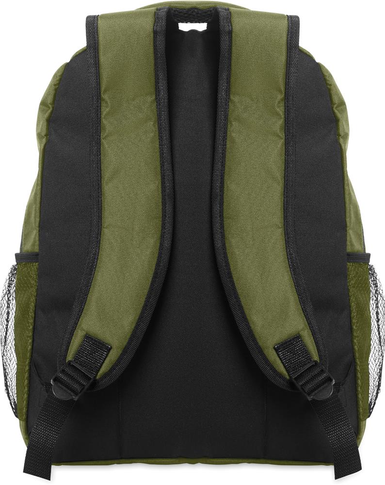 15'' Laptop-Rucksack aus 600D RPET-Polyester mit gepolstertem Laptopfach. Beidseitige Netztaschen und Reißverschlusstasche vorne.