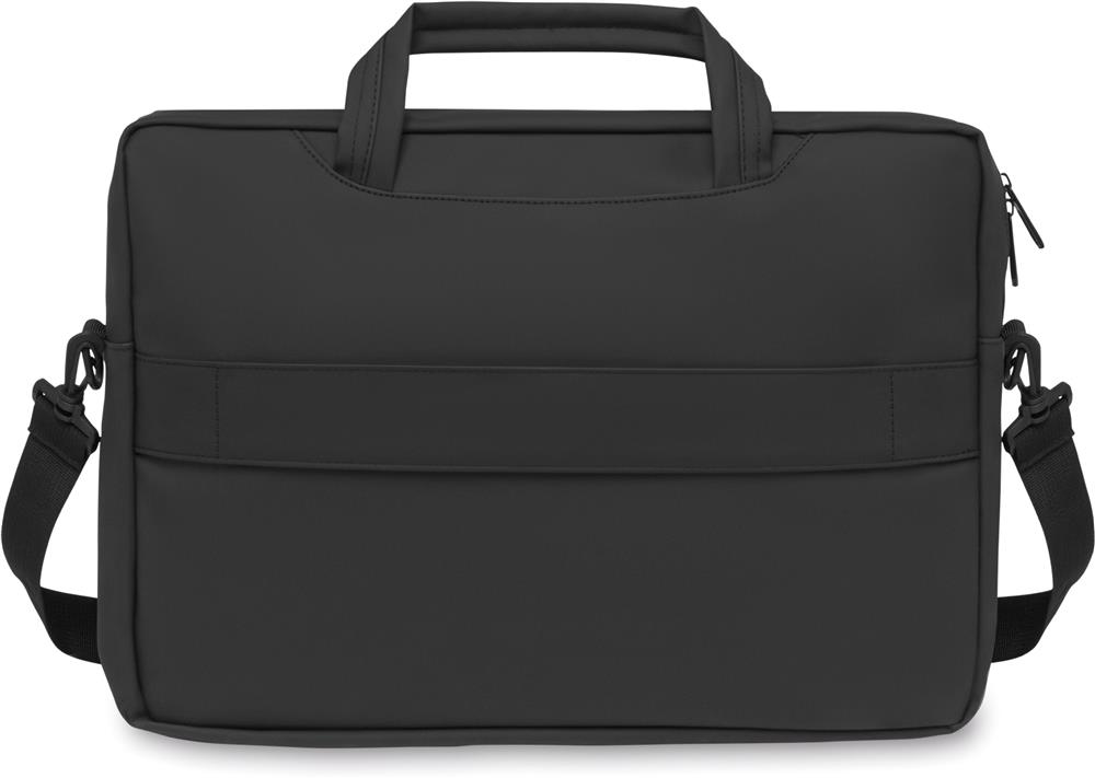 15'' Laptop Tasche aus weichem PU. Inkl. gepolstertes Laptop-Fach, Fronttasche mit Reißverschluss und diverse Fächer. Futter 210D RPET-Polyester. 2 Griffe, abnehmbarer und verstellbarer Schultergurt. Rückseitige Trolley-Halterung.