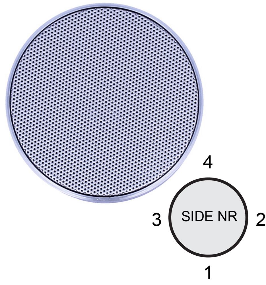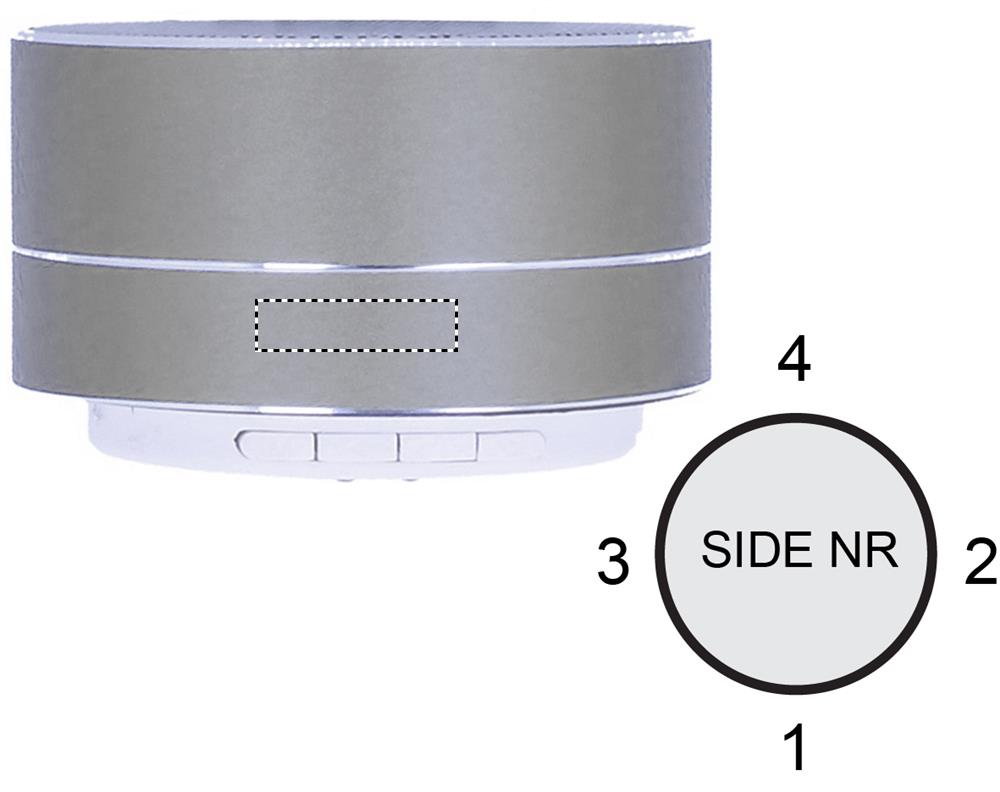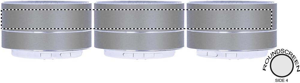 Aluminium 2.1 wireless Lautsprecher. Beleuchtete Unterseite. Inkl. Mikro-USB-Kabel und wieder aufladbare Li-on 450mAh Batterie. Ausgangsleistung: 3W, 4 Ohm und 5V.Material: AluminiumMaße: Ø7x4,3 cmGewicht: 0.137 kgVeredelung: Bestickung, Bedruckung, BeflockungHandling/Farbcodes: B/03, 16, 37Druckposition: SIDE 1 UPPERDruckmaße: 20 x 10 mmDrucktechniken: L3, P4Druckposition: SIDE 4 UPPERDruckmaße: 20 x 10 mmDrucktechniken: L3, P4Druckposition: SIDE 1 LOWERDruckmaße: 20 x 5 mmDrucktechniken: L3, P4Druckposition: TOPDruckmaße: 60 x 60 mmDrucktechniken: DO1Druckposition: ROUNDSCREENDruckmaße: 210 x 15 mmDrucktechniken: RS5