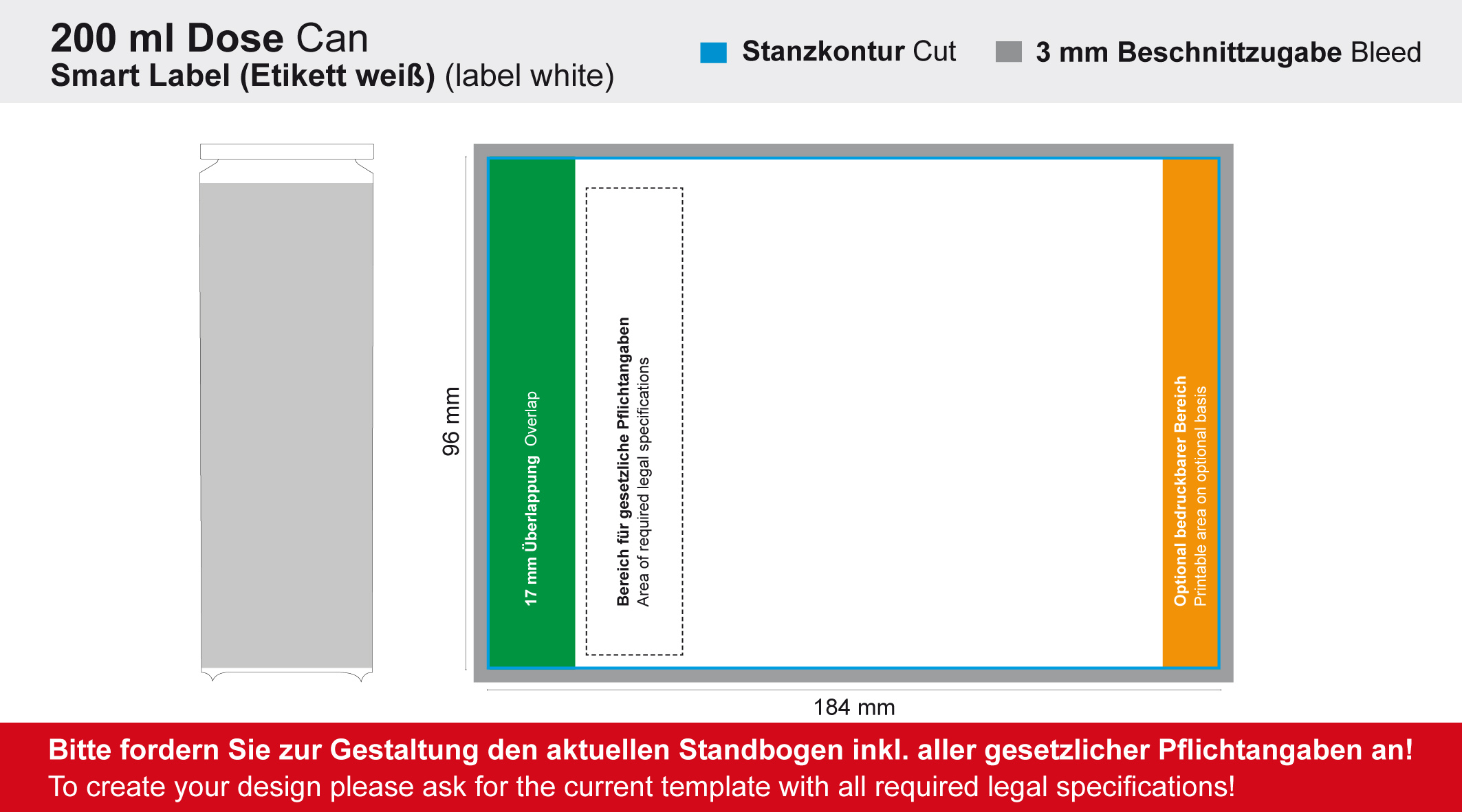 Bedruckung: Weißes Etikett rundum (inkl. Schutzlack)