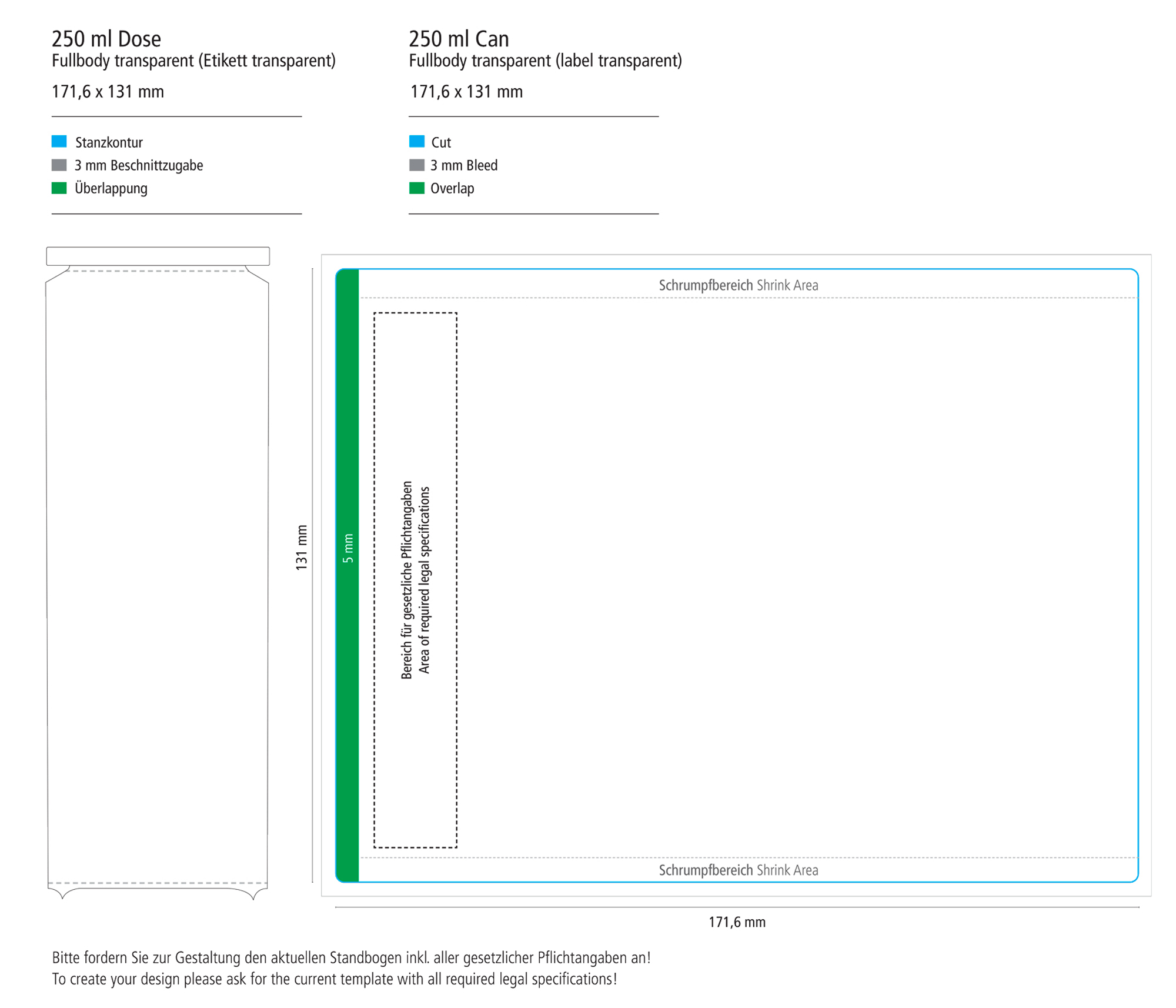 Bedruckung: Hochtransparentes Etikett rundum (Alu Look!) Das Etikett wird oben und unten an die Kontur der Dose angeschrumpft.Wahlweise matt oder hochglänzend.