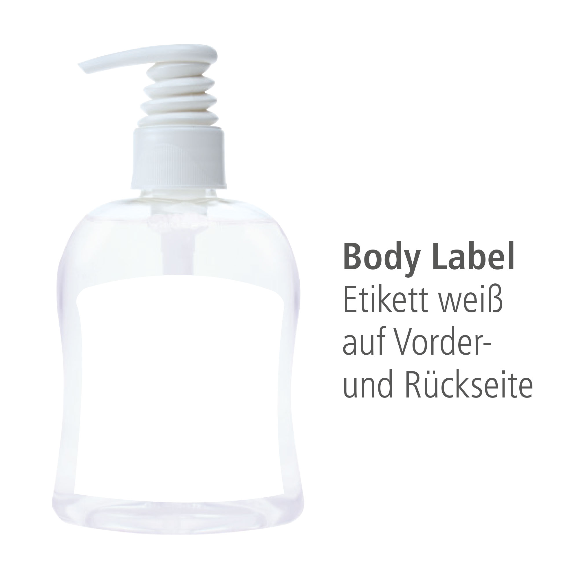 Dekoration: Body Label (PE weiß auf Vorder- und Rückseite, 4c CMYK + weiß, seidenglänzend).