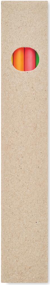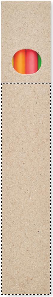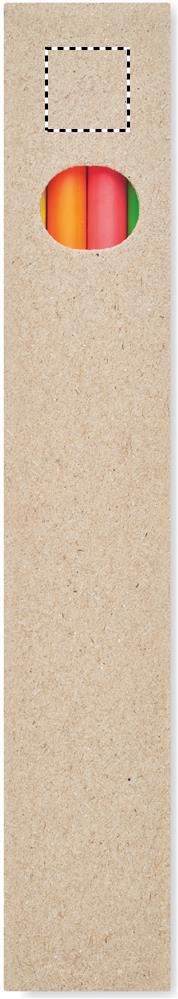 6 Buntstifte in einer Schachtel aus recyceltem Papier.Material: HolzMaße: 9x4,5x0,8 cmGewicht: 0.016 kgFarbe: MulticolourVeredelung: Bestickung, Bedruckung, BeflockungHandling/Farbcodes: /99Druckposition: FRONT PDDruckmaße: 46 x 55 mmDrucktechniken: PD1Druckposition: FRONT DOWNDruckmaße: 30 x 35 mmDrucktechniken: DL, P2Druckposition: FRONT TOPDruckmaße: 35 x 15 mmDrucktechniken: DL, P2Druckposition: BACKDruckmaße: 30 x 70 mmDrucktechniken: DL, P2Druckposition: BACK PDDruckmaße: 46 x 92 mmDrucktechniken: PD1