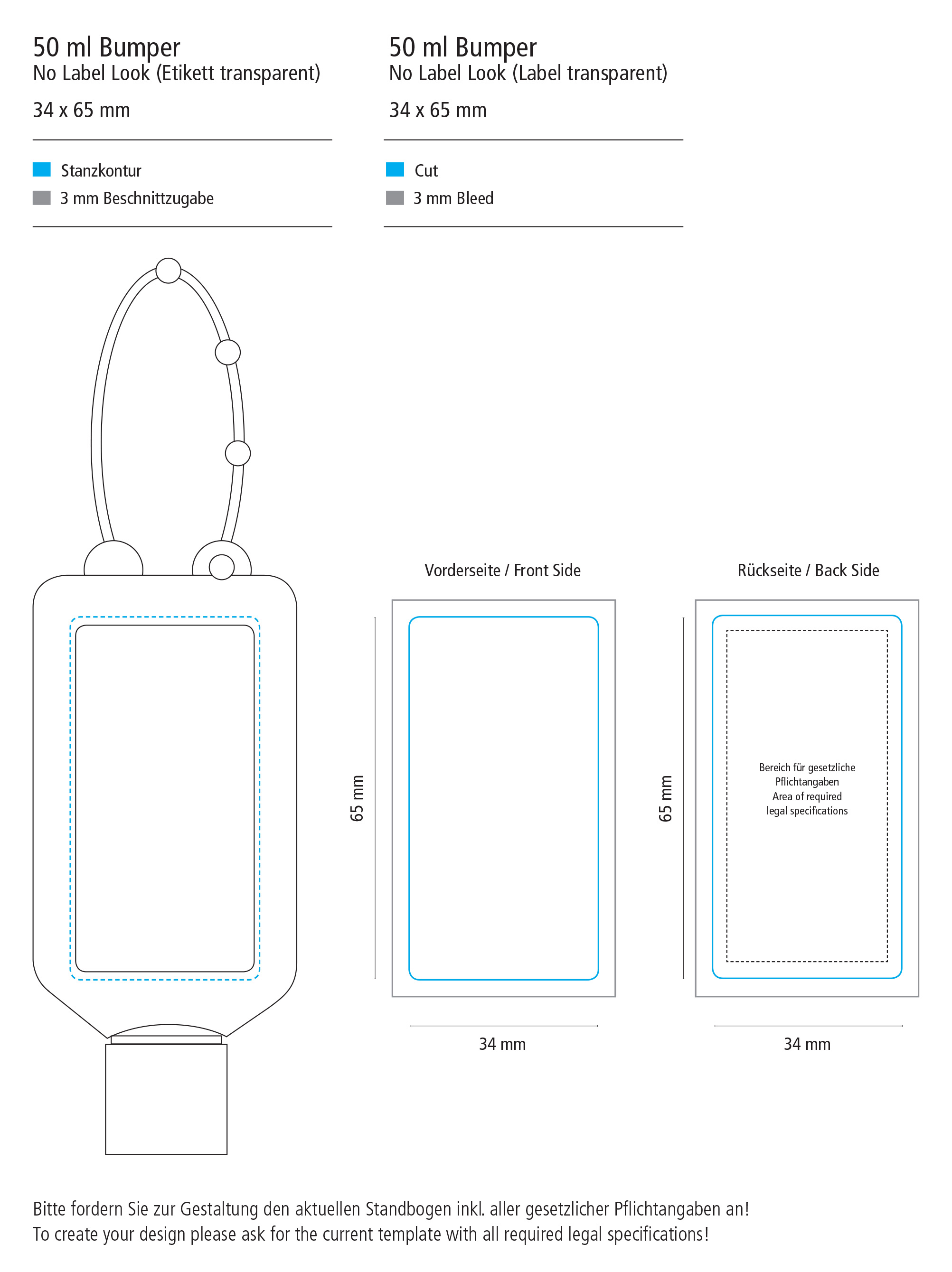 50 ml Bumper blau - Handreinigungsgel antibakteriell - No Label Look