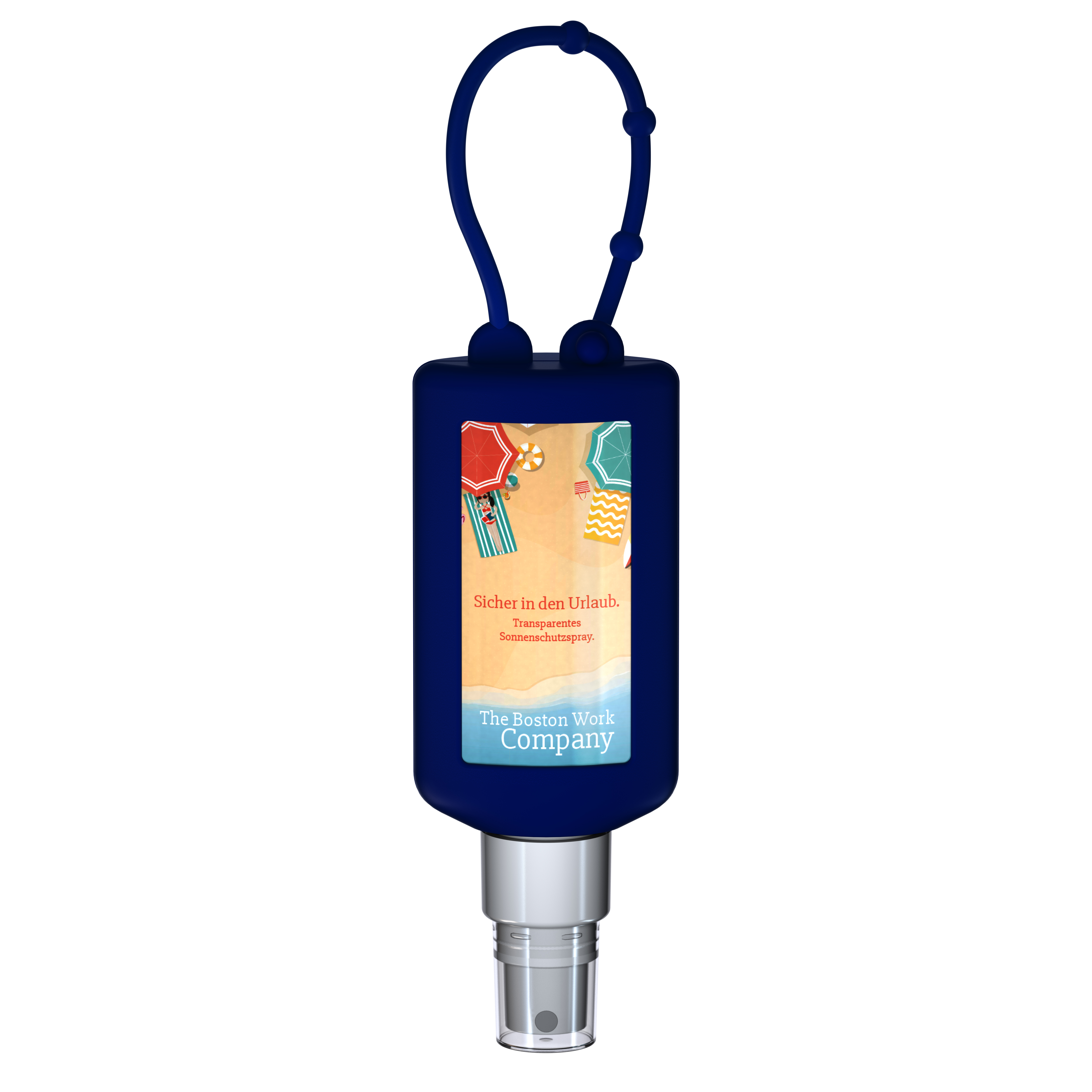 Das Spray mit Silikonhülle ist nicht nur optisch ein echter Hingucker! Raffiniert mit Schlaufe zum Anhängenan de Strandtasche, den Wander-Rucksack, den Ski-Anorak oder an den Kinderwagen.