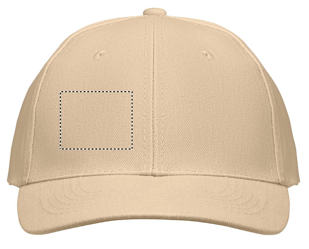 Baseball Kappe. 5 Panele. Verstellbarer Kunststoffverschluss. Farblich abgestimmte, Belüftungslöcher mit Metallösen. Baumwoll-Twill 160 gr/m2 . Größe 7 1/4.Material: BaumwolleMaße: 25x16x15cmGewicht: 0.052 kgVeredelung: Bestickung, Bedruckung, BeflockungHandling/Farbcodes: Z/03, 04, 05, 06, 07, 09, 10, 12, 37, 48Druckposition: FRONT SCREENDruckmaße: 100 x 40 mmDrucktechniken: S3Druckposition: FRONTDruckmaße: 80 x 40 mmDrucktechniken: E, T1, TD1, TRDruckposition: RIGHT SIDEDruckmaße: 40 x 25 mmDrucktechniken: TR, E, S3, T1, TD1Druckposition: LEFT SIDEDruckmaße: 40 x 25 mmDrucktechniken: E, S3, T1, TD1, TRDruckposition: BACKDruckmaße: 60 x 20 mmDrucktechniken: E