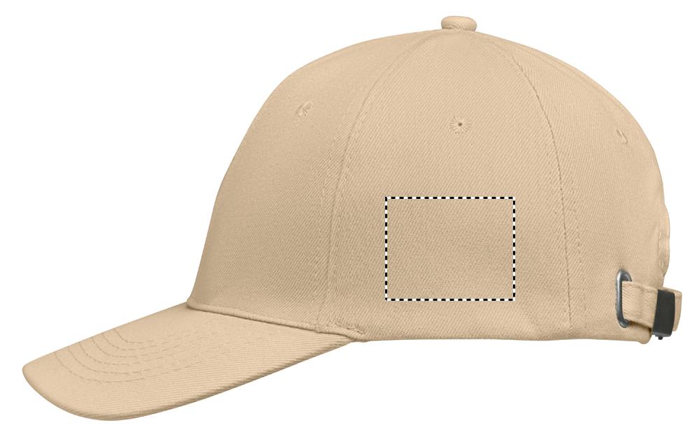 6-Panel-Baseball-Cap aus gebürsteter Baumwolle 260 g/m² mit silberner Schnalle aus Stahl mit Einstecklasche. Sechs farblich abgestimmte, umstickte Belüftungslöcher. Größe 7 1/4.Material: BaumwolleMaße: 20.5x17x12cmGewicht: 0.068 kgVeredelung: Bestickung, Bedruckung, BeflockungHandling/Farbcodes: Z/03, 04, 05, 06, 07, 10, 13, 35, 36, 44, 47, 54, 60, 83Druckposition: FRONT EMBROIDERYDruckmaße: 120 x 40 mmDrucktechniken: EDruckposition: BACKDruckmaße: 60 x 30 mmDrucktechniken: EDruckposition: SEGMENT LEFTDruckmaße: 50 x 40 mmDrucktechniken: E, S3, T1, TD1, TRDruckposition: SEGMENT RIGHTDruckmaße: 50 x 40 mmDrucktechniken: E, S3, T1, TD1, TRDruckposition: FRONTDruckmaße: 50 x 40 mmDrucktechniken: S3, T1, TD1