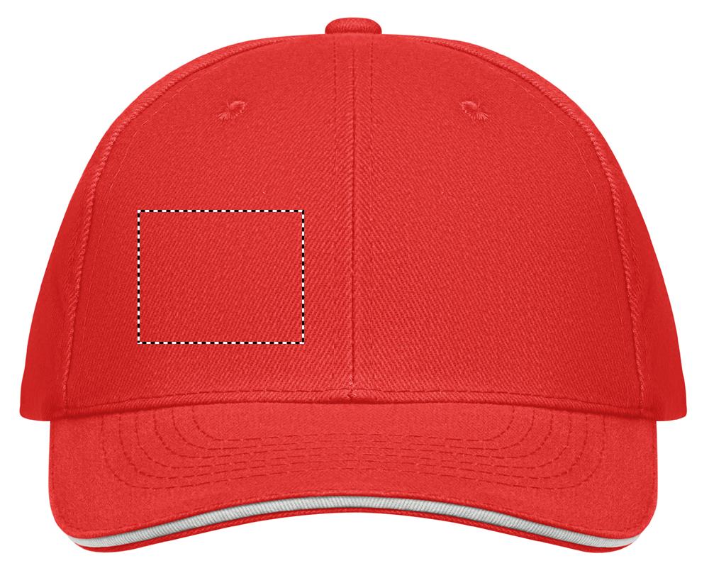 Baseball Kappe. 5 Panele. Verstellbarer Kunststoffverschluss. Farblich abgestimmte, Belüftungslöcher mit Metallösen. Baumwoll-Twill 160 gr/m2 . Größe 7 1/4.Material: BaumwolleMaße: 25x16x15cmGewicht: 0.052 kgVeredelung: Bestickung, Bedruckung, BeflockungHandling/Farbcodes: Z/03, 04, 05, 06, 07, 09, 10, 12, 37, 48Druckposition: FRONT SCREENDruckmaße: 100 x 40 mmDrucktechniken: S3Druckposition: FRONTDruckmaße: 80 x 40 mmDrucktechniken: E, T1, TD1, TRDruckposition: RIGHT SIDEDruckmaße: 40 x 25 mmDrucktechniken: TR, E, S3, T1, TD1Druckposition: LEFT SIDEDruckmaße: 40 x 25 mmDrucktechniken: E, S3, T1, TD1, TRDruckposition: BACKDruckmaße: 60 x 20 mmDrucktechniken: E
