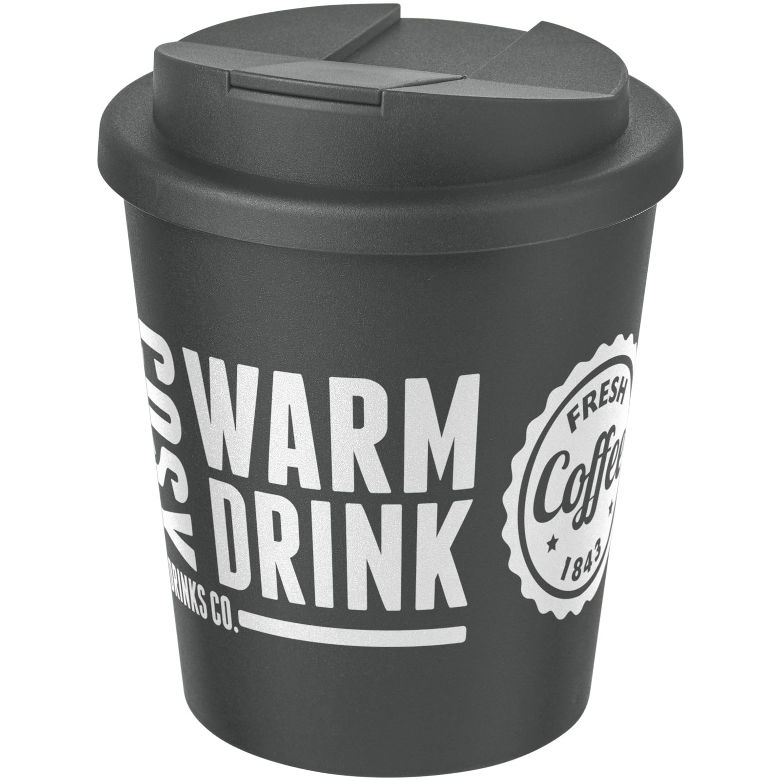 Kompakter, doppelwandiger Isolierbecher mit auslaufsicherem Schraubverschluss. Trinköffnung mit Clip verhindert auslaufen und schließt ohne Silikon. Passt unter die meisten Kaffeemaschinen. Das Fassungsvermögen beträgt 250 ml. Mischen und kombinieren Sie Farben, um Ihren perfekten Becher zu kreieren. Hergestellt in Großbritannien. EN12875-1-konform, spülmaschinen- und mikrowellengeeignet. Verpackt in einem recycelten PE-Kunststoffbeutel.Besonderheiten:- Kapazität in Millilitern: 250- Zusätzliche Eigenschaften von Trinkgefäßen: Leicht zu reinigen- Verwendungszweck des Trinkgefäßes: Heiße Getränke- Art der Isolierung: Luftisolierung- Eigenschaften des Deckels: Schraubverschluss, Mit einer Hand zu öffnen/zu schließen- Mikrowellengeeignet: Ja- SMETAMaterial: PP KunststoffGewicht: 102 gGröße: 11,8 x Ø 9,45 cmStandard-Druck---------------Druckart: SiebrundumDruckposition: rundumDruckgröße: 228 x 50 mm mm (BxH)Druckfarben maximal: 4Zusätzliche Informationen: Sie können die gewünschten Farben nicht finden? Erstellen Sie Ihren perfekten Americano auf unserer neuen Mix and Match Seite!Suchwörter: Becher, Reisen, Isolieren, Thermo, Getränk, Getränke, Isolierbecher, auslaufsicher, Becher