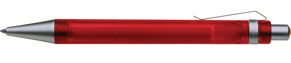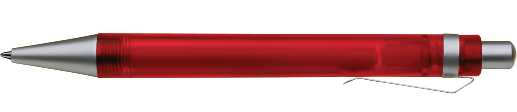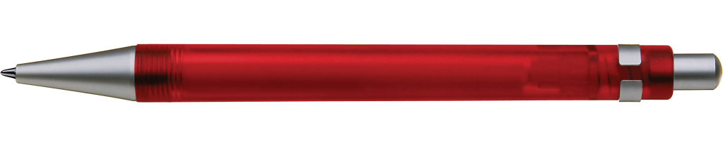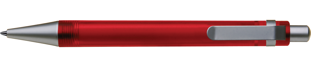 Druckkugelschreiber mit transparent gefrostetem oder gedecktem Gehäuse. Metalldrücker, Metallclip und Metallspitze matt verchromt.