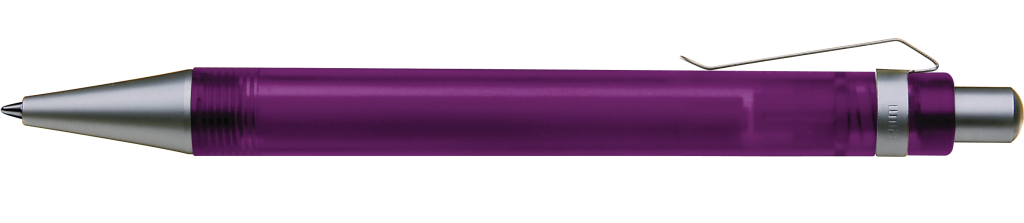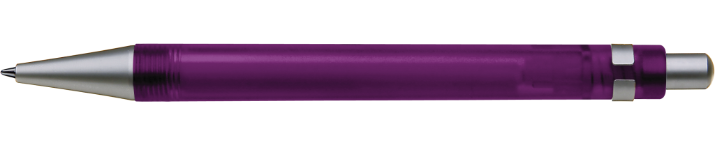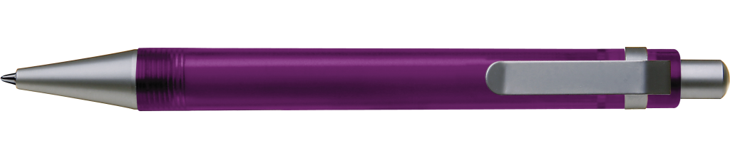Druckkugelschreiber mit transparent gefrostetem oder gedecktem Gehäuse. Metalldrücker, Metallclip und Metallspitze matt verchromt.