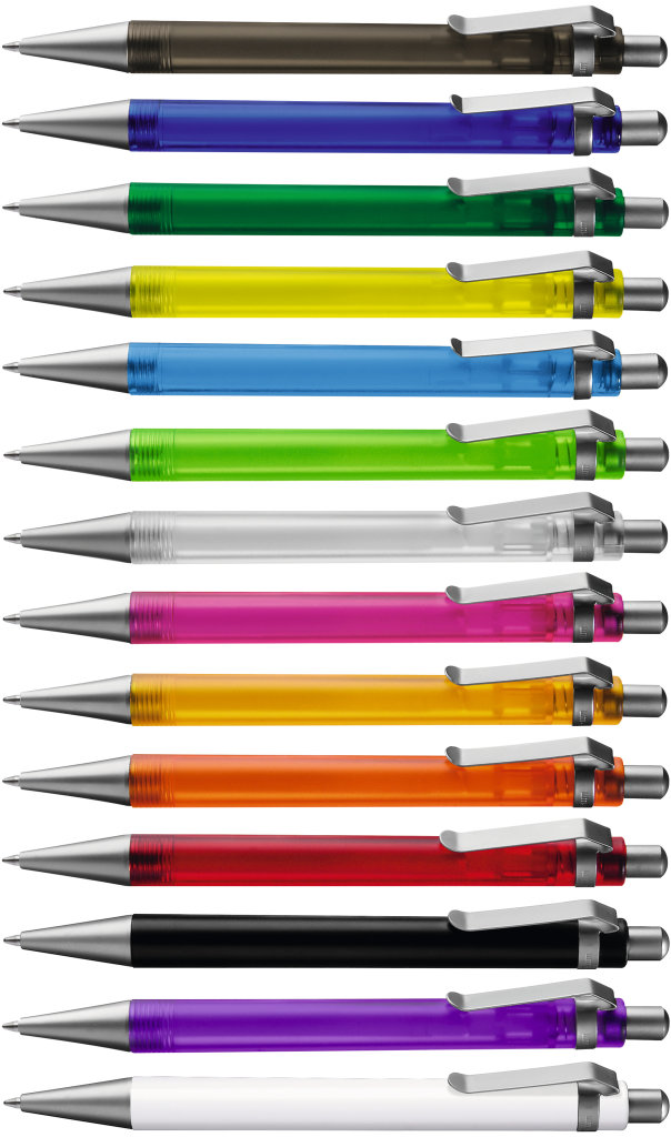 Farbiger Kugelschreiber aus Kunststoff, schwarzschreibend.Maße: ø10×138 mmSchreibgerät-Typ: KugelschreiberSchreibgerät-Mechanik: DruckmechanikSchreibfarbe: SchwarzMinentyp: Normale MineLinienstärke: 1 mmMaterial: KunststoffVeredelungsposition 1: Korpus - rechts vom ClipTechnologie: TampondruckMaximale Farben: 4Durchmesser: 0Druckcode: P0Technologie: TampondruckMaximale Farben: 1Durchmesser: 0Druckcode: P1Technologie: UV LED DruckDurchmesser: 0Druckcode: UVAVeredelungsposition 2: Korpus - links vom ClipTechnologie: TampondruckMaximale Farben: 4Durchmesser: 0Druckcode: P0Technologie: TampondruckMaximale Farben: 1Durchmesser: 0Druckcode: P1Technologie: UV LED DruckDurchmesser: 0Druckcode: UVAVeredelungsposition 3: KlipTechnologie: TampondruckMaximale Farben: 4Durchmesser: 0Druckcode: P0Veredelungsposition 4: Korpus - in Verlängerung vom ClipTechnologie: TampondruckMaximale Farben: 4Durchmesser: 0Druckcode: P0