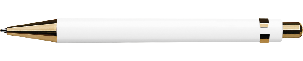 Druckkugelschreiber mit schwarzem oder weißem Gehäuse. Metalldrücker, Metallclip und Metallspitze gold glänzend.Druckbereich: In Clipverlängerung 40mm x 20mm Siebdruck (S), gegenüber vom Clip 60mm x 14mm Siebdruck (S), seitlich vom Clip 60mm x 14mm Siebdruck (S), auf dem Clip 20mm x 3,5mm Lasergravur (L), auf dem Clip 20mm x 3,5mm Einzelnamensgravur (EL), auf dem Clip 20mm x 3,5mm Ätzung (E)