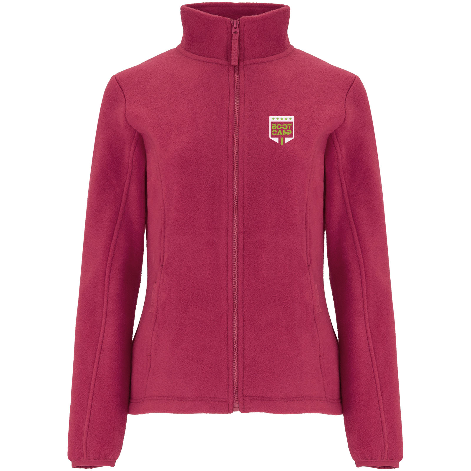 Fleecejacke mit gefüttertem Stehkragen und entsprechend verstärkten und verdeckten Nähten. Eingespritzter Reißverschluss mit passendem Zipper aus Stoff. Ärmelbündchen mit Gummizug. Seitentaschen. Taillierter Schnitt. Unterer Saum mit seitlichem Reißverschluss. Herausnehmbares Etikett. Das Modell ist 179 cm groß und trägt Größe S.Besonderheiten:- Geschlecht: Weiblich- OEKO-TEX®- SMETAMaterial: Fleece 100% Polyester, 300 g/m2Grammatur: 300 g/m2Standard-Druck---------------Druckart: SiebdruckDruckposition: linke BrustDruckgröße: 50 x 100 mm mm (BxH)Druckfarben maximal: 2Zusätzliche Informationen: Schauen Sie bitte vor der Bestellung in die Roly Größentabelle. Roly folgt den spanischen Größen, die eine eher slim-fit Passform haben.Suchwörter: roly, jacke, jacken, fleece
