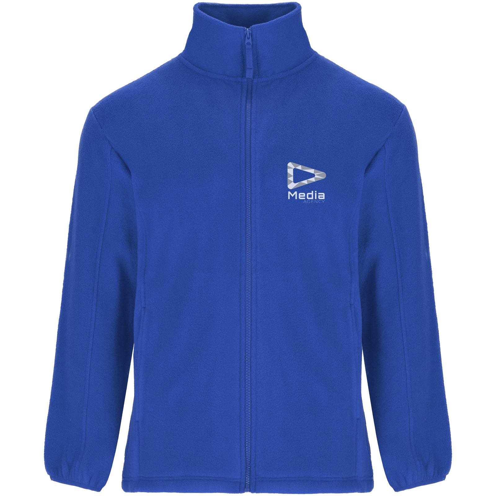 Fleecejacke mit gefüttertem Stehkragen und entsprechend verstärkten und verdeckten Nähten. Eingespritzter Reißverschluss mit passendem Zipper aus Stoff. Seitentaschen. Ärmelbündchen mit Gummizug. Unterer Saum mit seitlichem Reißverschluss. Herausnehmbares Etikett. Das Modell ist 185 cm groß und trägt Größe M.Besonderheiten:- Geschlecht: Männlich- OEKO-TEX®- SMETAMaterial: Fleece 100% Polyester, 300 g/m2Grammatur: 300 g/m2Standard-Druck---------------Druckart: SiebdruckDruckposition: linke BrustDruckgröße: 100 x 100 mm mm (BxH)Druckfarben maximal: 2Zusätzliche Informationen: Schauen Sie bitte vor der Bestellung in die Roly Größentabelle. Roly folgt den spanischen Größen, die eine eher slim-fit Passform haben.Suchwörter: roly, jacke, jacken, fleece