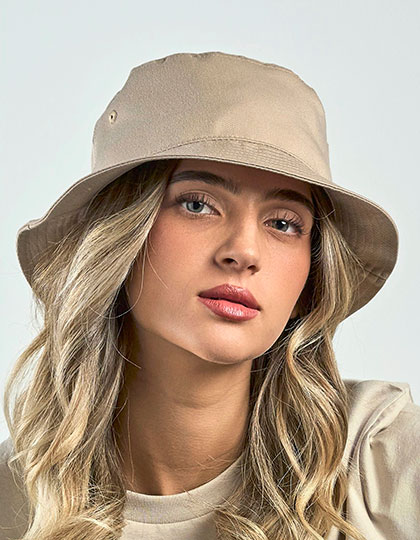 Recyceltes PolyesterBucket-FormNahtumfasste ÖsenPolyester-SchweißbandMaterial: 100% PolyesterGrammatur: 200 g/m²Gewicht: 0.084Hergestellt nach: Recycelter PolyesterVeredelung: Bestickung, Bedruckung, BeflockungGröße: One Size
