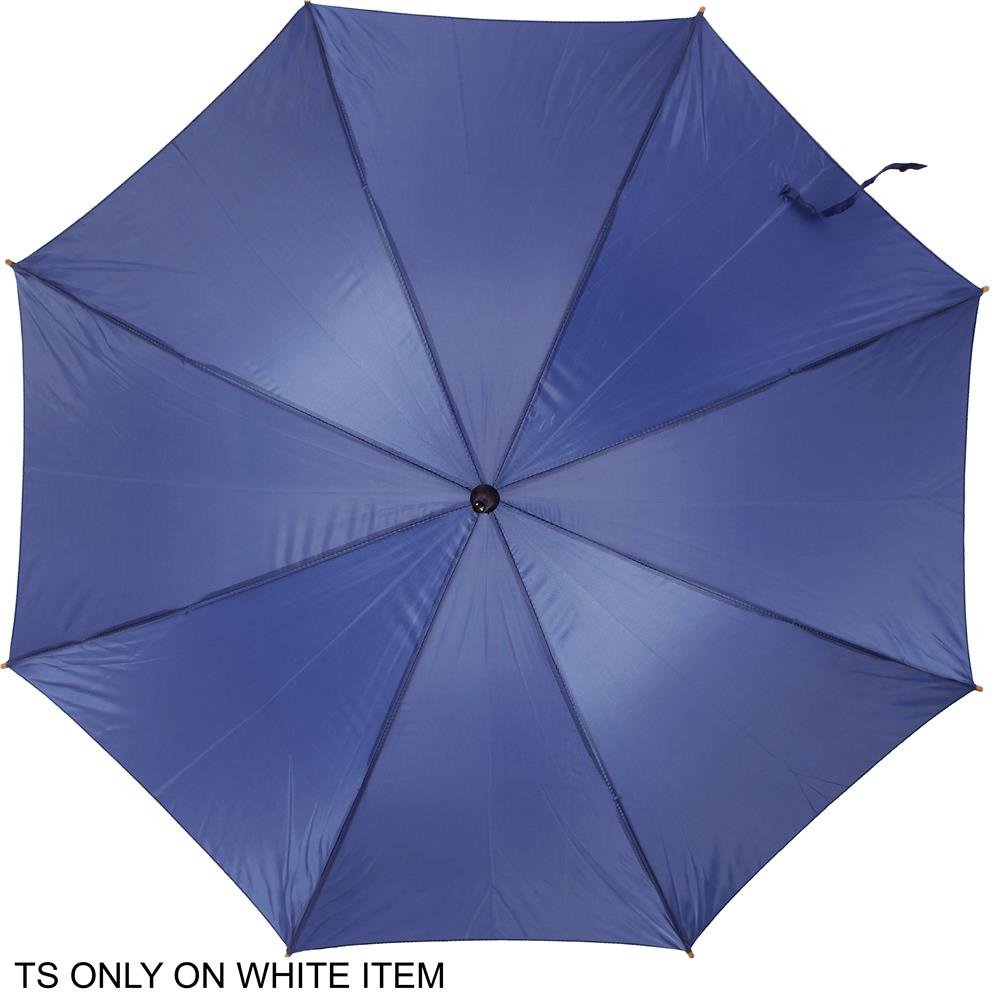 23 inch Regenschirm aus 190T Polyester. Stock, Spitzen und Krone aus Holz. Stangen aus schwarz überzogenem Metall. Gebogener Griff aus Holz in Natur-Finish. Automatische Öffnung, manuelle Schließung.
