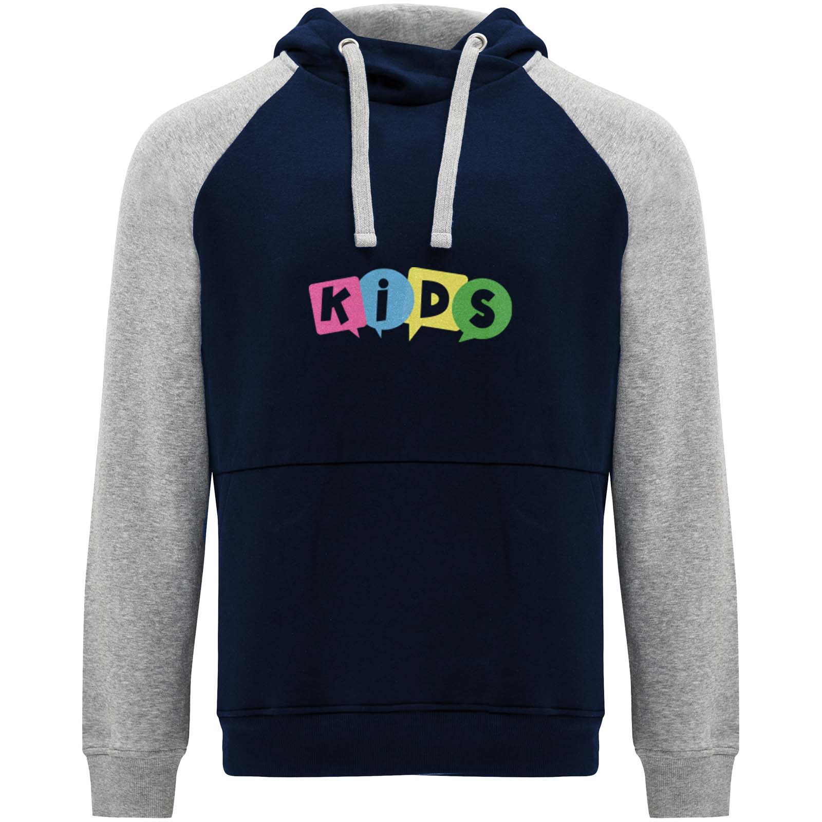 Zweifarbiger Unisex Kapuzenpulli. Kapuze mit gekreuztem Kragen und Metallösen. Innenkapuze, Kordelzug und Raglanärmel in Kontrastfarbe. Kängurutasche. Bündchen und Saum aus elastischem 1×1-Rippstrick. Abnehmbares Etikett.Besonderheiten:- Geschlecht: Kinder- OEKO-TEX®- SMETAMaterial: Gebürsteter Sweatshirt Strick 50% Baumwolle, 50% Polyester, 280 g/m2Grammatur: 280 g/m2Standard-Druck---------------Druckart: SiebdruckDruckposition: Großflächig auf die VorderseiteDruckgröße: 160 x 110 mm mm (BxH)Druckfarben maximal: 5Zusätzliche Informationen: Schauen Sie bitte vor der Bestellung in die Roly Größentabelle. Roly folgt den spanischen Größen, die eine eher slim-fit Passform haben.Suchwörter: roly, Kapuzenpulli, Hoodie, Sweater