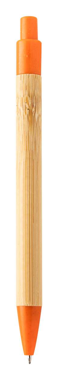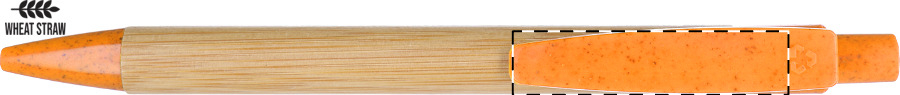 Bambus-Kugelschreiber mit Clip und Spitze aus ökologischem Weizenstroh-Kunststoff, blauschreibend.Maße: ø11×142 mmSchreibgerät-Typ: KugelschreiberSchreibgerät-Mechanik: DruckmechanikSchreibfarbe: BlauLinienstärke: 1 mmSchreiblänge: 600 mmMaterial: Bambus, Weizenstroh, KunststoffVeredelungsposition 1: Korpus - rechts vom ClipTechnologie: GravurDurchmesser: 0Druckcode: E1Technologie: Gravur - EinzelnamenDurchmesser: 0Druckcode: NE1Technologie: TampondruckMaximale Farben: 4Durchmesser: 0Druckcode: P1Technologie: TampondruckMaximale Farben: 1Durchmesser: 0Druckcode: P2Veredelungsposition 2: Korpus - links vom ClipTechnologie: GravurDurchmesser: 0Druckcode: E1Technologie: Gravur - EinzelnamenDurchmesser: 0Druckcode: NE1Technologie: TampondruckMaximale Farben: 4Durchmesser: 0Druckcode: P1Technologie: TampondruckMaximale Farben: 1Durchmesser: 0Druckcode: P2Veredelungsposition 3: Korpus - in Verlängerung vom ClipTechnologie: GravurDurchmesser: 0Druckcode: E1Technologie: Gravur - EinzelnamenDurchmesser: 0Druckcode: NE1Technologie: TampondruckMaximale Farben: 4Durchmesser: 0Druckcode: P1Veredelungsposition 4: KlipTechnologie: TampondruckMaximale Farben: 4Durchmesser: 0Druckcode: P1