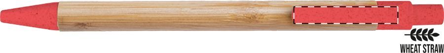 Bambus-Kugelschreiber mit Elemten aus ökologischem Weizenstrohkunststoff, blauschreibend.Maße: ø10×140 mmSchreibgerät-Typ: KugelschreiberSchreibgerät-Mechanik: DruckmechanikSchreibfarbe: BlauLinienstärke: 1 mmMaterial: Bambus, Kunststoff (ABS), WeizenstrohVeredelungsposition 1: Korpus - rechts vom ClipTechnologie: GravurDurchmesser: 0Druckcode: E1Technologie: Gravur - EinzelnamenDurchmesser: 0Druckcode: NE1Technologie: TampondruckMaximale Farben: 4Durchmesser: 0Druckcode: P1Veredelungsposition 2: Korpus - links vom ClipTechnologie: GravurDurchmesser: 0Druckcode: E1Technologie: Gravur - EinzelnamenDurchmesser: 0Druckcode: NE1Technologie: TampondruckMaximale Farben: 4Durchmesser: 0Druckcode: P1Veredelungsposition 3: Korpus - in Verlängerung vom ClipTechnologie: GravurDurchmesser: 0Druckcode: E1Technologie: Gravur - EinzelnamenDurchmesser: 0Druckcode: NE1Technologie: TampondruckMaximale Farben: 4Durchmesser: 0Druckcode: P1Veredelungsposition 4: KlipTechnologie: TampondruckMaximale Farben: 2Durchmesser: 0Druckcode: P1Veredelungsposition 5: Korpus - gegenüber vom ClipTechnologie: GravurDurchmesser: 0Druckcode: E1Technologie: Gravur - EinzelnamenDurchmesser: 0Druckcode: NE1Technologie: TampondruckMaximale Farben: 4Durchmesser: 0Druckcode: P1