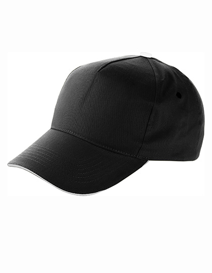 5-Panel-CapVelcro-VerschlussFünf SegmenteSandwich-Schild und Knopf in KontrastfarbeMaterial: 100% BaumwolleGewicht: 0.068Veredelung: Bestickung, Bedruckung, BeflockungGröße: One Size