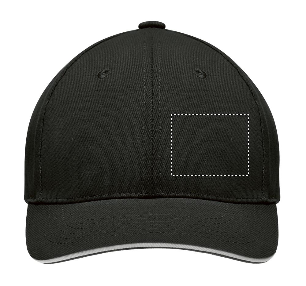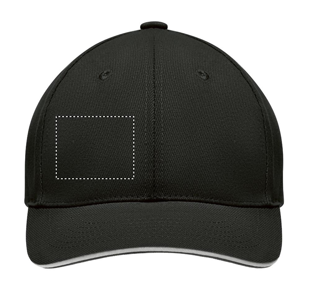 Baseball Kappe. 5 Panele. Verstellbarer Kunststoffverschluss. Farblich abgestimmte, Belüftungslöcher mit Metallösen. Baumwoll-Twill 160 gr/m2 . Größe 7 1/4.Material: BaumwolleMaße: 25x16x15cmGewicht: 0.052 kgVeredelung: Bestickung, Bedruckung, BeflockungHandling/Farbcodes: Z/03, 04, 05, 06, 07, 09, 10, 12, 37, 48Druckposition: FRONT SCREENDruckmaße: 100 x 40 mmDrucktechniken: S3Druckposition: FRONTDruckmaße: 80 x 40 mmDrucktechniken: E, T1, TD1, TRDruckposition: RIGHT SIDEDruckmaße: 40 x 25 mmDrucktechniken: TR, E, S3, T1, TD1Druckposition: LEFT SIDEDruckmaße: 40 x 25 mmDrucktechniken: E, S3, T1, TD1, TRDruckposition: BACKDruckmaße: 60 x 20 mmDrucktechniken: E