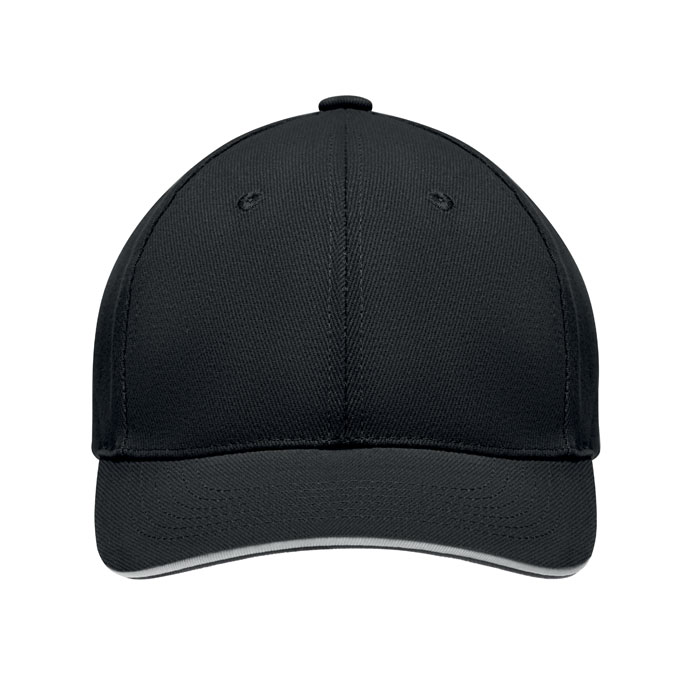 Fünf SegmenteStirnverstärkung ohne MittelnahtVorgebogener Schirm mit sechs SteppnähtenNahtumfasste ÖsenGrößeneinstellung durch KlettverschlussAbreißetikettMaterial: 100% PolyesterGrammatur: 125 g/m²Gewicht: 0.055Veredelung: Bestickung, Bedruckung, BeflockungGröße: One Size