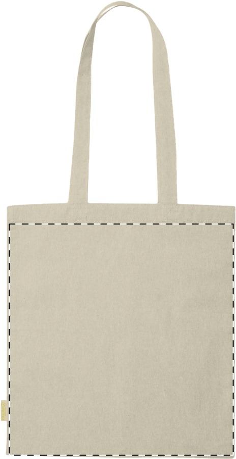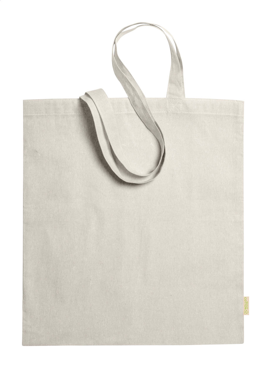 Wiederverwendbare Einkaufstasche aus 100% recycelter Baumwolle (120g/m²) mit langen Henkeln.