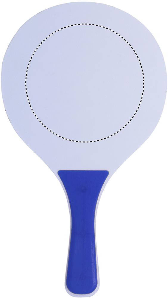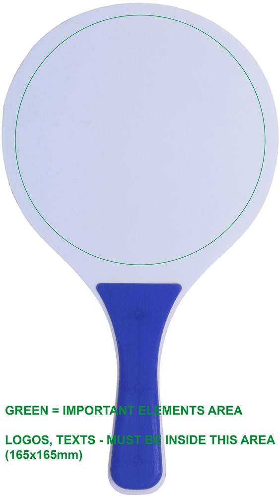 Beachball Spiel mit 2 Schlägern aus MDF und einem soften Ball.Material: MDFMaße: 32,5x18x0,5cmGewicht: 0.26 kgVeredelung: Bestickung, Bedruckung, BeflockungHandling/Farbcodes: C/03, 05, 10, 37, 48Druckposition: RACKET 1 SCREENDruckmaße: 130 x 130 mmDrucktechniken: DL, S3Druckposition: RACKET 2 SCREENDruckmaße: 130 x 130 mmDrucktechniken: DL, S3Druckposition: RACKET 1 FRONT PDDruckmaße: 185 x 185 mmDrucktechniken: PD5Druckposition: RACKET 1 BACK PDDruckmaße: 185 x 185 mmDrucktechniken: PD5Druckposition: RACKET 2 FRONT PDDruckmaße: 185 x 185 mmDrucktechniken: PD5