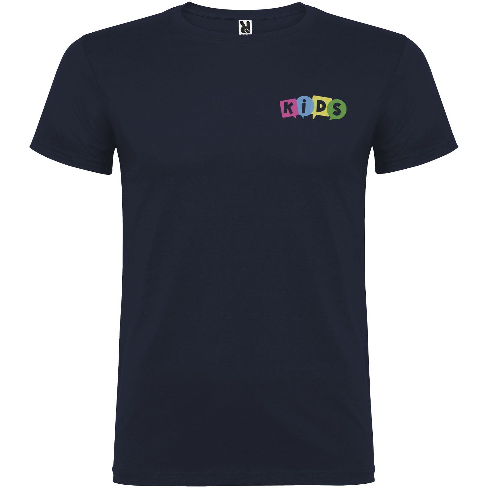 Kurzärmeliges T-Shirt mit doppellagigem Rundhalsausschnitt aus Elasthan, hergestellt aus schlauchförmigem Material. Verstärkte und verdeckte Nähte am Kragen. Herausnehmbares Etikett. Das Modell ist 120 cm groß und trägt Größe 5/6.Besonderheiten:- Geschlecht: Kinder- OEKO-TEX®- SMETAMaterial: Single jersey Strick 100% Baumwolle, 155 g/m2Grammatur: 155 g/m2Standard-Druck---------------Druckart: SiebdruckDruckposition: linke BrustDruckgröße: 80 x 40 mm mm (BxH)Druckfarben maximal: 5Zusätzliche Informationen: Schauen Sie bitte vor der Bestellung in die Roly Größentabelle. Roly folgt den spanischen Größen, die eine eher slim-fit Passform haben.Suchwörter: roly, t-shirt, tshirt, t shirt, t-shirts, tshirts, t shirts, t shirts