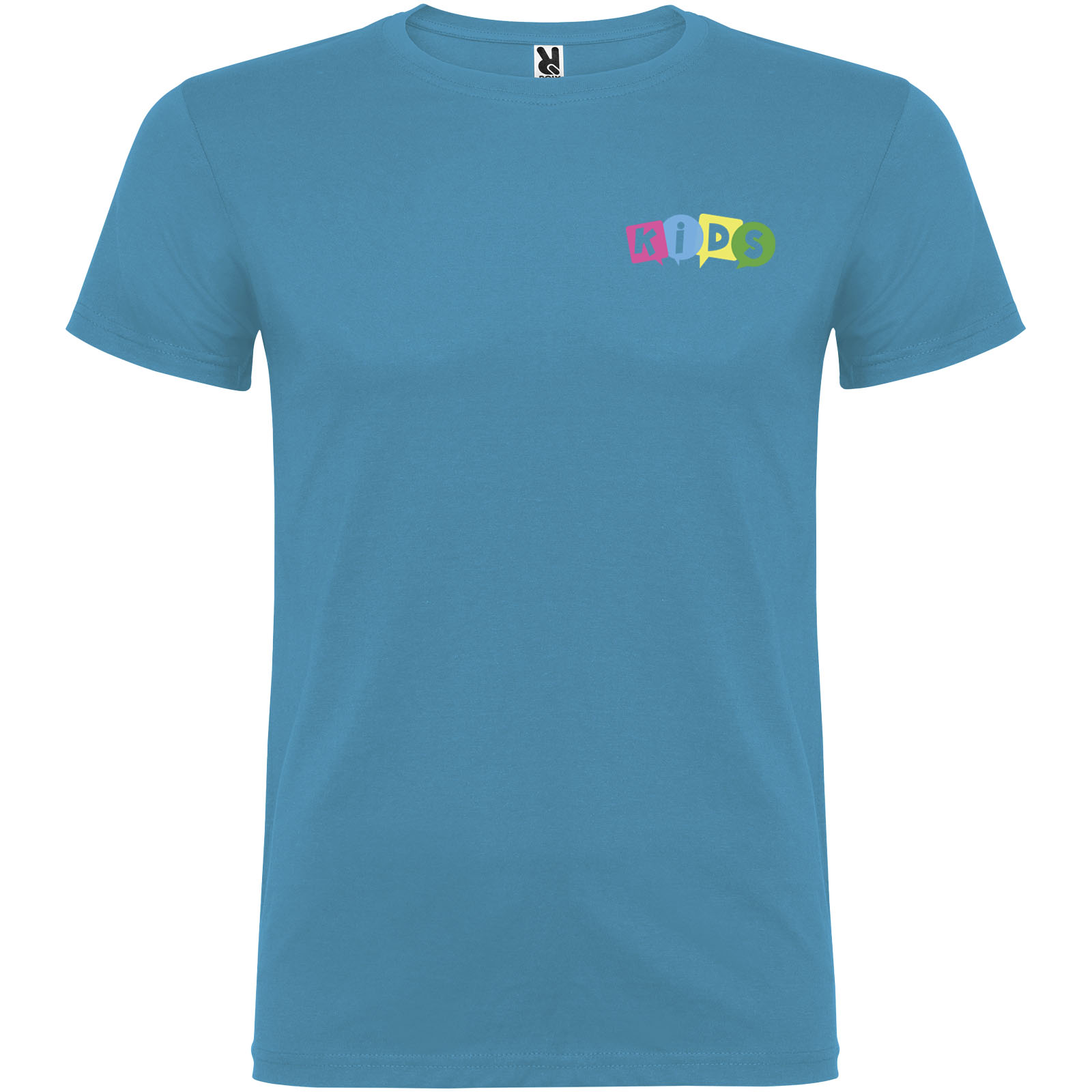 Kurzärmeliges T-Shirt mit doppellagigem Rundhalsausschnitt aus Elasthan, hergestellt aus schlauchförmigem Material. Verstärkte und verdeckte Nähte am Kragen. Herausnehmbares Etikett. Das Modell ist 120 cm groß und trägt Größe 5/6.Besonderheiten:- Geschlecht: Kinder- OEKO-TEX®- SMETAMaterial: Single jersey Strick 100% Baumwolle, 155 g/m2Grammatur: 155 g/m2Standard-Druck---------------Druckart: SiebdruckDruckposition: linke BrustDruckgröße: 80 x 40 mm mm (BxH)Druckfarben maximal: 5Zusätzliche Informationen: Schauen Sie bitte vor der Bestellung in die Roly Größentabelle. Roly folgt den spanischen Größen, die eine eher slim-fit Passform haben.Suchwörter: roly, t-shirt, tshirt, t shirt, t-shirts, tshirts, t shirts, t shirts