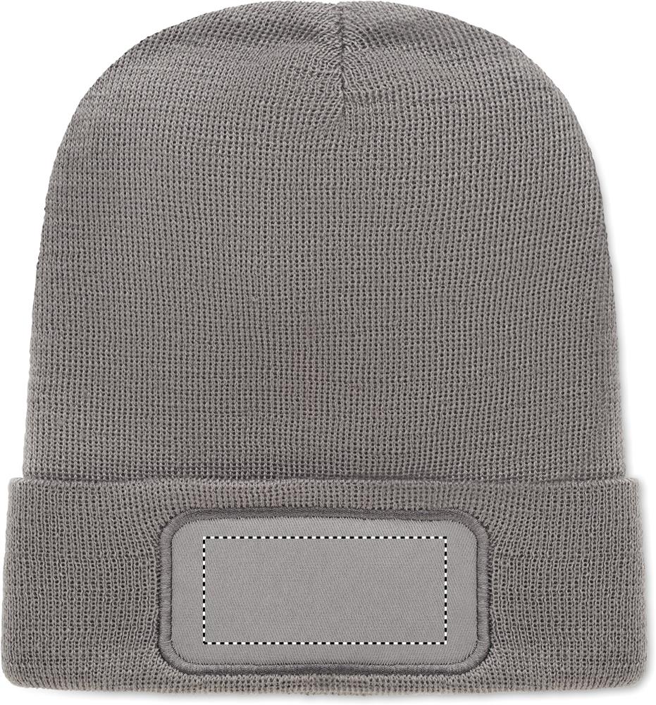 Beanie aus softem, elastischem RPET-Polyester. Mit Umschlag und Aufnäher. Unisex.Material: RPETMaße: Ø21x23cmGewicht: 0.078 kgVeredelung: Bestickung, Bedruckung, BeflockungHandling/Farbcodes: Z/03, 15, 85Druckposition: FRONTDruckmaße: 80 x 35 mmDrucktechniken: E, S3, T1, TD1, TR