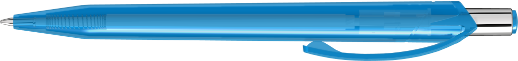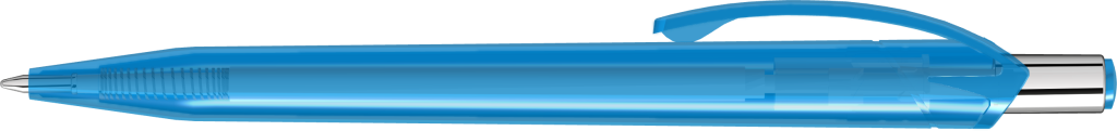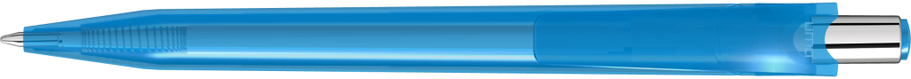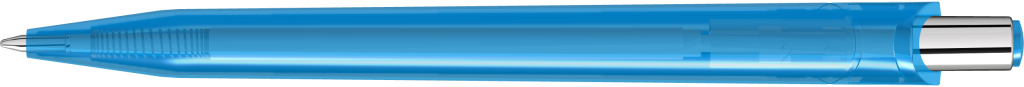 Druckkugelschreiber mit glänzend transparentem Gehäuse und Drückerstopfen. Drücker in silber glänzend.Druckbereich: In Clipverlängerung 40mm x 20mm Siebdruck (S), auf dem Clip 35mm x 6mm Tampondruck (T), seitlich vom Clip 60mm x 13mm Siebdruck (S), gegenüber vom Clip 60mm x 13mm Siebdruck (S)
