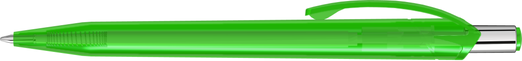 Druckkugelschreiber mit glänzend transparentem Gehäuse und Drückerstopfen. Drücker in silber glänzend.Druckbereich: In Clipverlängerung 40mm x 20mm Siebdruck (S), auf dem Clip 35mm x 6mm Tampondruck (T), seitlich vom Clip 60mm x 13mm Siebdruck (S), gegenüber vom Clip 60mm x 13mm Siebdruck (S)