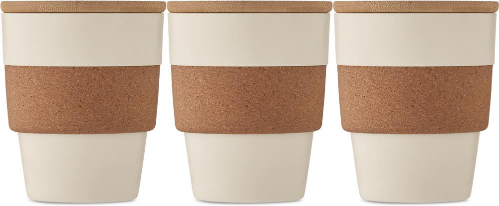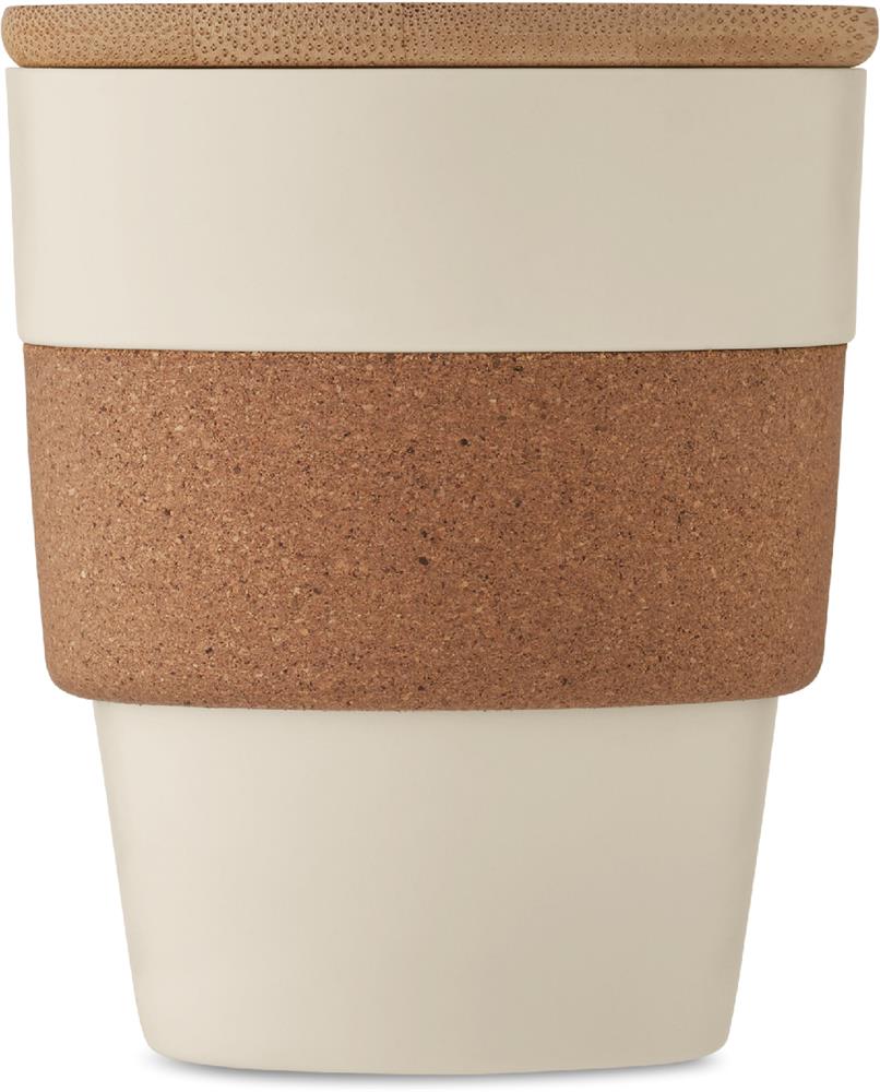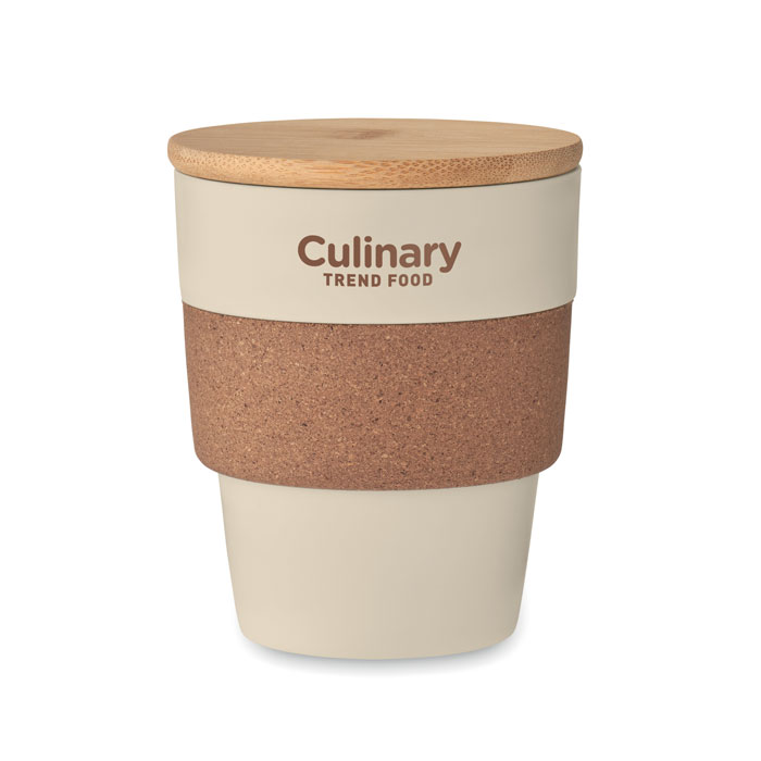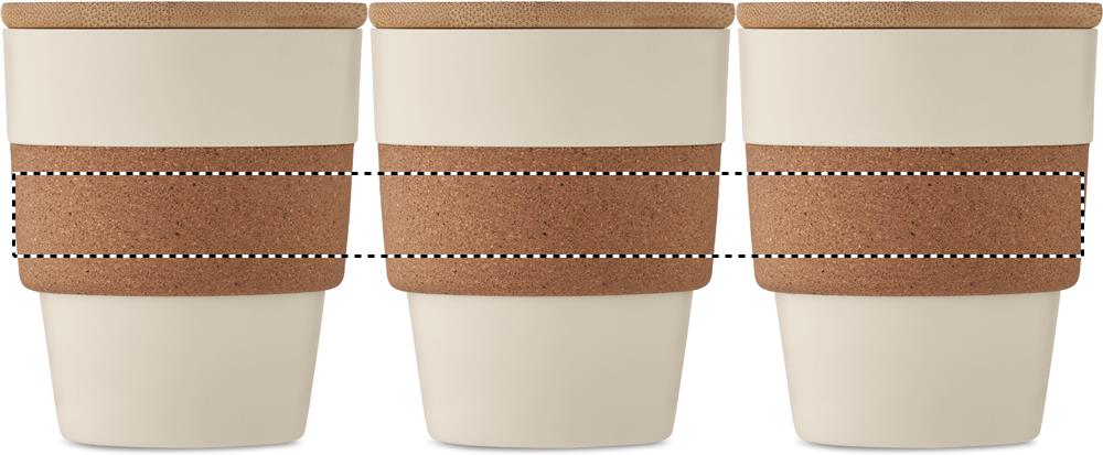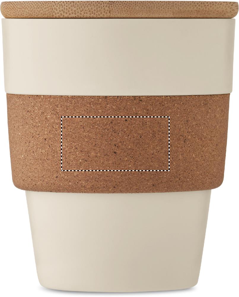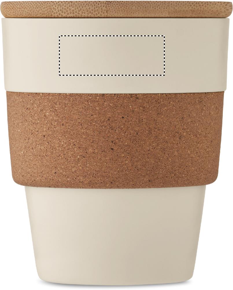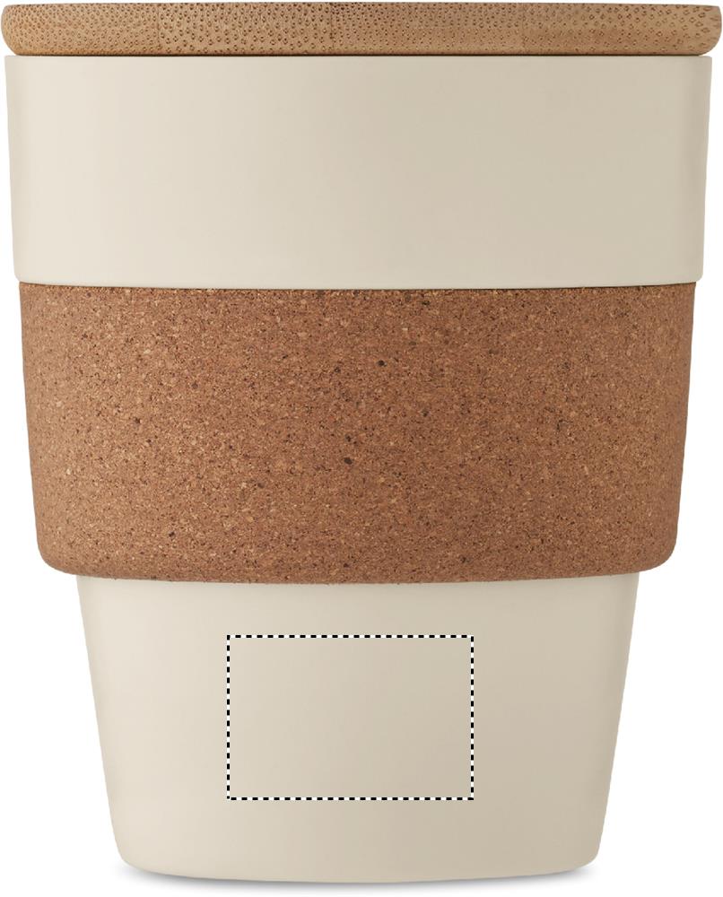 Einwandiger Trinkbecher aus PP. Griff aus Kork und Deckel aus Bambus. Füllmenge: 300 ml. Da es sich um einen einwandigen Becher handelt, kann es trotzdem zu einer Wärmeübertragung kommen. Bambus ist ein natürliches Produkt, es kann daher zu leichten Abweichungen in Farbe, Dekor und Maßen kommen.Material: BambusMaße: Ø8.5x10cmGewicht: 0.138 kgVeredelung: Bestickung, Bedruckung, BeflockungHandling/Farbcodes: Z/03, 06, 13Druckposition: 360Druckmaße: 258 x 20 mmDrucktechniken: RLDruckposition: CORK FRONTDruckmaße: 40 x 20 mmDrucktechniken: L3, P5Druckposition: MUG FRONT UPPERDruckmaße: 40 x 15 mmDrucktechniken: P6Druckposition: MUG FRONT LOWERDruckmaße: 30 x 20 mmDrucktechniken: P6Druckposition: LIDDruckmaße: 60 x 60 mmDrucktechniken: L3, P5