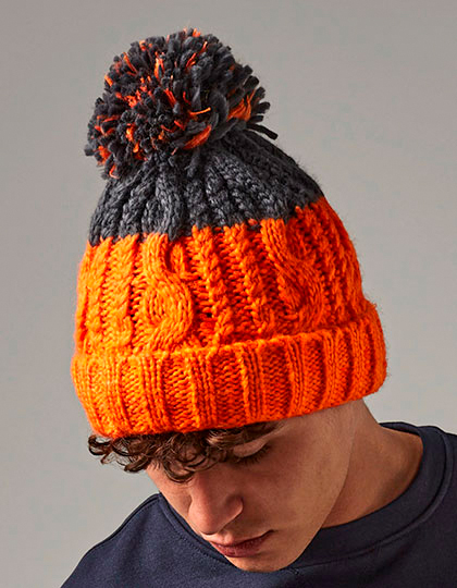 Abreißetikett für einfaches RebrandingSchwerer Kabelstrick in MelangeGleichfarbiger BommelHandgestricktes GriffgefühlSuprafleece™ ThermobandDesign mit Umschlag für optimale VeredlungMaterial: 100% PolyacrylGewicht: 0.133Veredelung: Bestickung, Bedruckung, BeflockungGröße: One Size