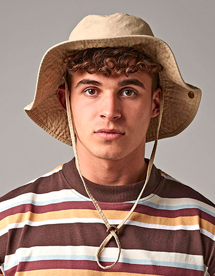 100 % schwere, gewaschene BaumwolleAbgeflachte OberseiteLichtschutzfaktor 50+Elastischer Kordelzug-Verstellung mit StopperKinnriemen mit Leder-StopperNetz-LuftlöcherSeitliche DruckknöpfeEntspricht BS 8466Material: 100% BaumwolleGewicht: 0.154Veredelung: Bestickung, Bedruckung, BeflockungGröße: One Size