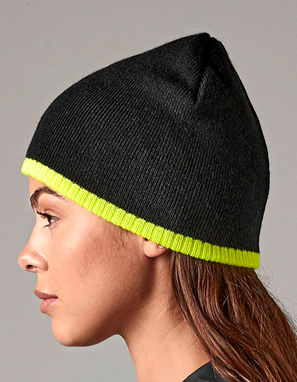 Beechfield Two-Tone Pull-On Beanie Black/Fluorescent Orange