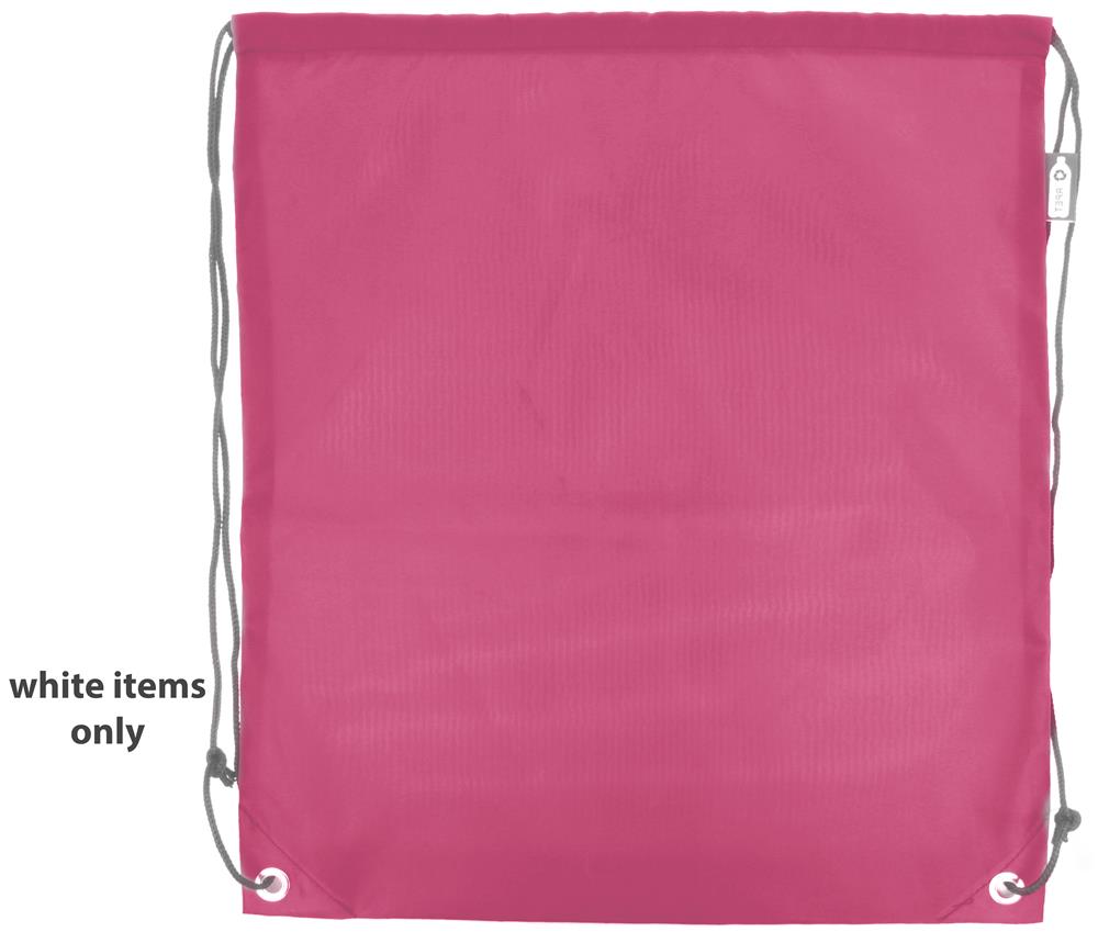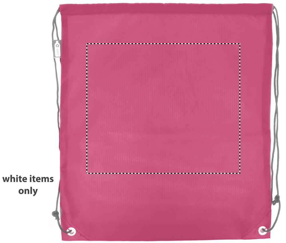 Beutel mit Kordelzug aus 190T RPET mit PP Kordel. Umweltfreundlich, da aus recycelten Kunststoffflaschen hergestellt.Material: RPETMaße: 36x40 cmGewicht: 0.025 kgVeredelung: Bestickung, Bedruckung, BeflockungHandling/Farbcodes: /08, 12, 38, 60, 85, 03, 04, 05, 06, 37, 10, 48Druckposition: FRONTDruckmaße: 300 x 260 mmDrucktechniken: TR, T1, TD1Druckposition: BACKDruckmaße: 300 x 260 mmDrucktechniken: T1, TD1, TRDruckposition: FRONT ON WHITEDruckmaße: 260 x 220 mmDrucktechniken: TS3Druckposition: BACK ON WHITEDruckmaße: 260 x 220 mmDrucktechniken: TS3
