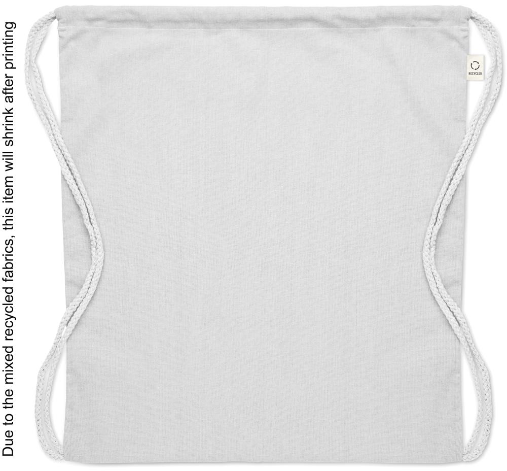 Beutel mit Kordelzug aus recycelter Pre-Consumer-Baumwolle (70 %) und RPET (30 %). 140 g/m². Artikel kann nach dem Bedrucken schrumpfen.