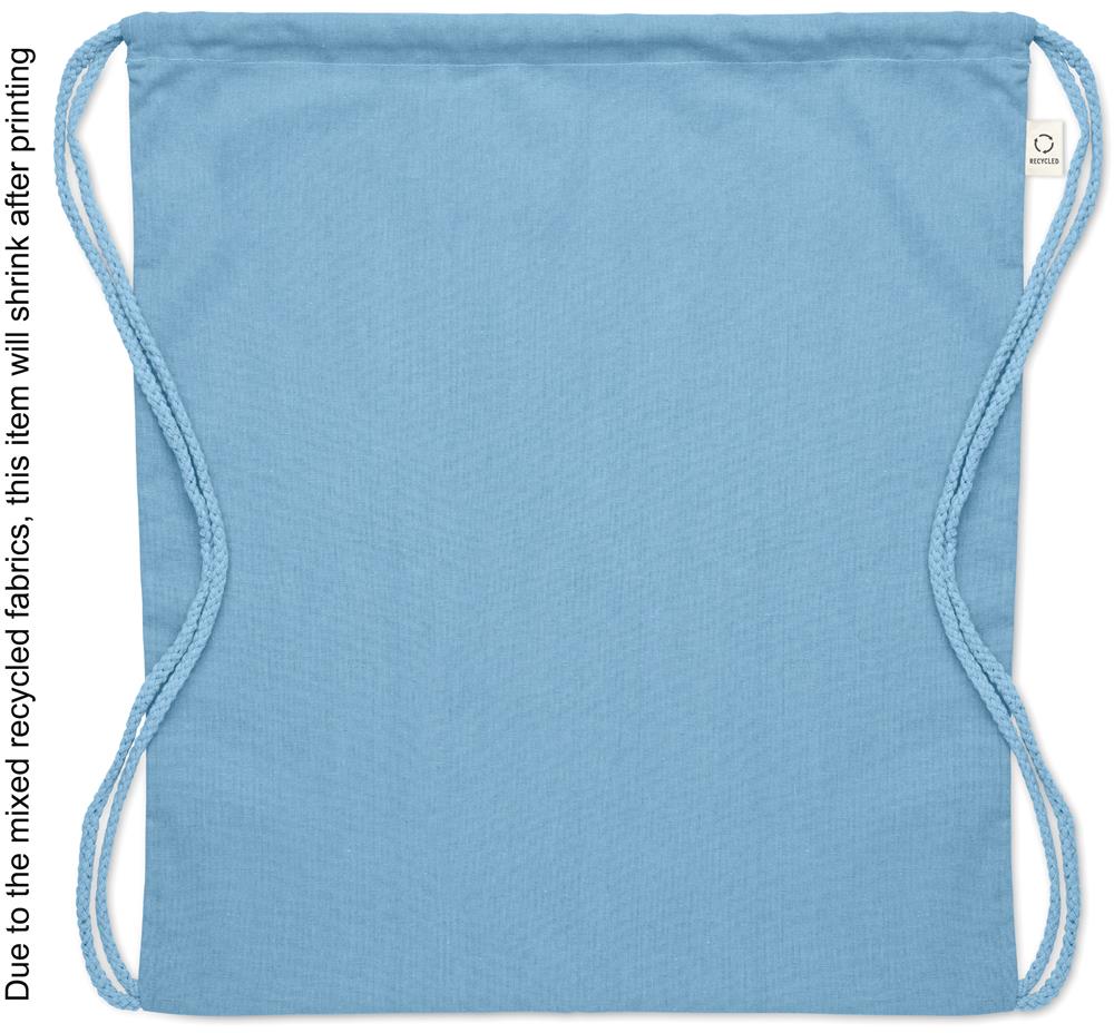 Beutel mit Kordelzug aus recycelter Pre-Consumer-Baumwolle (70 %) und RPET (30 %). 140 g/m². Artikel kann nach dem Bedrucken schrumpfen.