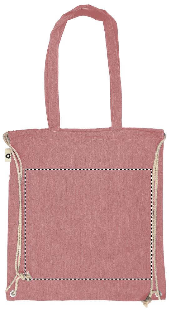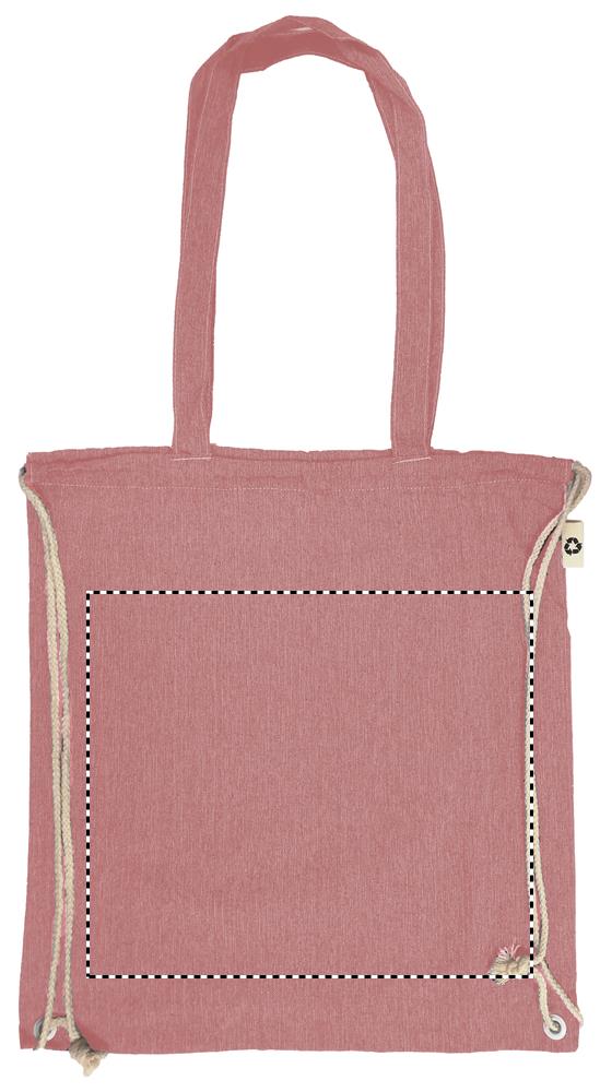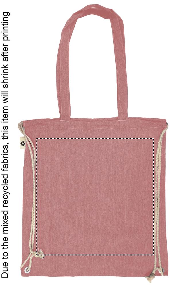 2 tone (recycelte Baumwolle und recyceltes Polyester) Einkaufstasche mit Kordelzug und langen Henkeln (20%/80%). ca. 140 gr/m². Dieser Artikel kann nach dem Bedrucken schrumpfen.Material: RPET-Recycelte BaumwolleMaße: 38x42 cmGewicht: 0.081 kgVeredelung: Bestickung, Bedruckung, BeflockungHandling/Farbcodes: /04, 05, 07, 13, 37Druckposition: FRONTDruckmaße: 300 x 300 mmDrucktechniken: S3, T1, TRDruckposition: BACKDruckmaße: 300 x 300 mmDrucktechniken: TR, S3, T1Druckposition: FRONT TD1Druckmaße: 300 x 260 mmDrucktechniken: TD1Druckposition: BACK TD1Druckmaße: 300 x 260 mmDrucktechniken: TD1