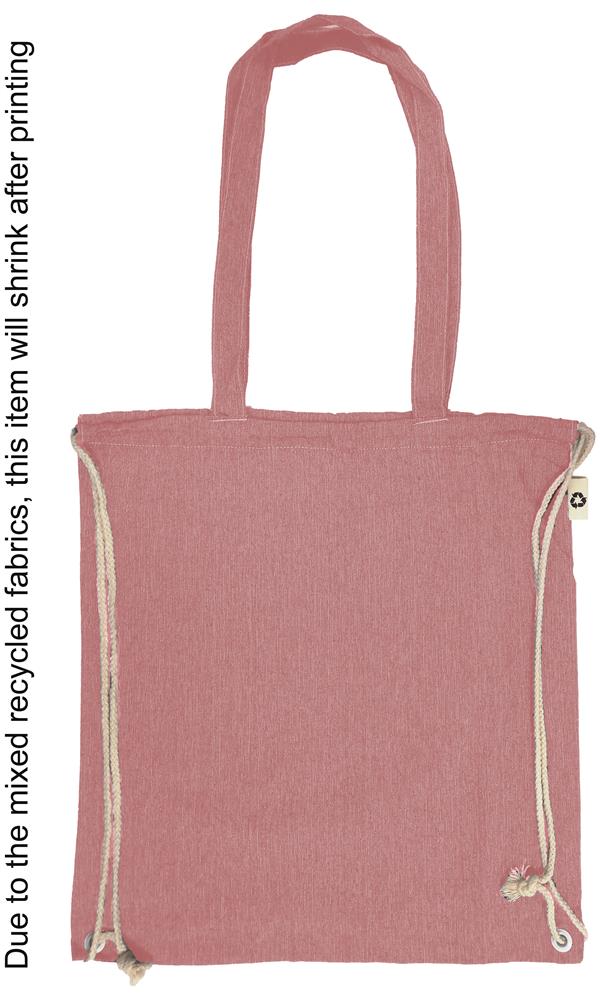 2 tone (recycelte Baumwolle und recyceltes Polyester) Einkaufstasche mit Kordelzug und langen Henkeln (20%/80%). ca. 140 gr/m². Dieser Artikel kann nach dem Bedrucken schrumpfen.