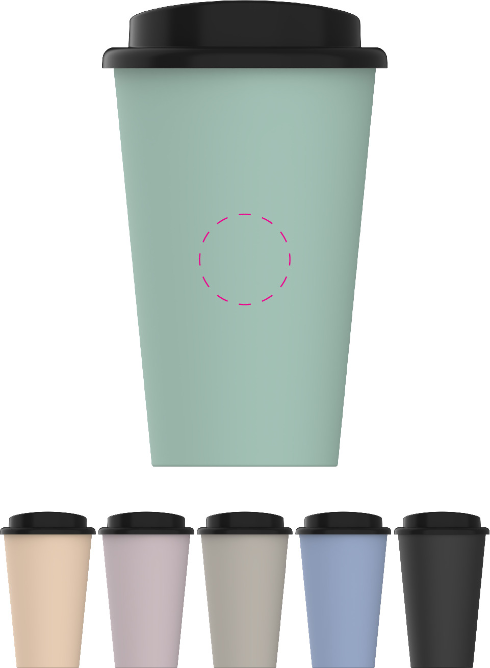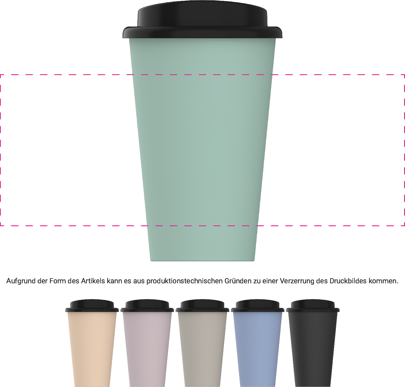 Für den Kaffee unterwegs. Praktischer To-Go-Becher aus doppelwandigem Kunststoff inkl. Deckel mit Trinköffnung. Der Deckel ist verschraubbar und hält somit besonders gut auf dem Becher. Aus Bio-Kunststoff gefertigt und in vielen wunderschönen Natur-Farben erhältlich. Füllmenge: 0,35 Liter.Material: KunststoffMaße: 0 x 0 x 280 x Ø: 95,00 mmGewicht: 122 gHinweis: Dieser Artikel entspricht der europäischen Verordnung Nr. 1935/2004 über Materialien und Gegenstände, die dazu bestimmt sind, mit Lebensmitteln in Berührung zu kommen. Dieser Artikel wurde unter den Bedingungen der guten Herstellungspraxis (GMP) gemäß EU-Verordung 2023/2006 hergestellt.DruckmöglichkeitenPosition 2: In Deckel (Anspritzpunkt ausgespart!)Druckart: TampondruckDruckgruppe: TAMEMaximale Farben: 5Durchmesser: 30 mmDruckhinweise: tampographiePosition 5: Rundum 25 mm zwischen Anfang und EndeDruckart: SiebdruckDruckgruppe: DEMaximale Farben: 5Breite: 220 mmHöhe: 90 mmDruckhinweise: sérigraphiePosition 7: SeitlichDruckart: TampondruckDruckgruppe: TAMEMaximale Farben: 5Durchmesser: 30 mmDruckhinweise: tampographie