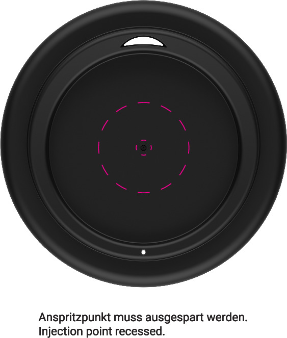 Position 2: In Deckel (Anspritzpunkt ausgespart!)