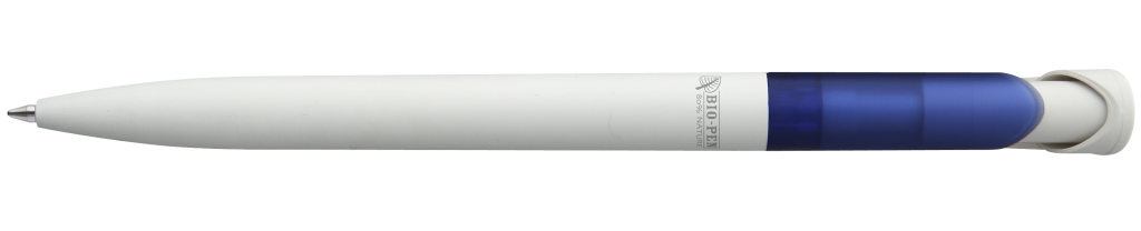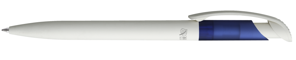 Druckkugelschreiber mit Gehäuse und Clip aus 100% nachwachsendem und kompostierbarem Material. Oberteil aus gefrostetem ABS Kunststoff.Druckbereich: Auf dem Clip 30mm x 7mm Tampondruck (T), in Clipverlängerung 50mm x 20mm Siebdruck (S), seitlich vom Clip 50mm x 20mm Siebdruck (S), gegenüber vom Clip 50mm x 20mm Siebdruck (S)