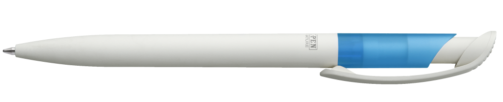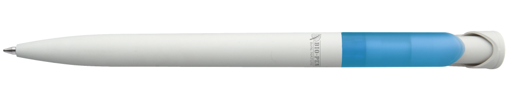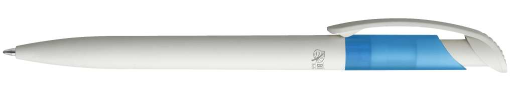 Druckkugelschreiber mit Gehäuse und Clip aus 100% nachwachsendem und kompostierbarem Material. Oberteil aus gefrostetem ABS Kunststoff.Druckbereich: Auf dem Clip 30mm x 7mm Tampondruck (T), in Clipverlängerung 50mm x 20mm Siebdruck (S), seitlich vom Clip 50mm x 20mm Siebdruck (S), gegenüber vom Clip 50mm x 20mm Siebdruck (S)